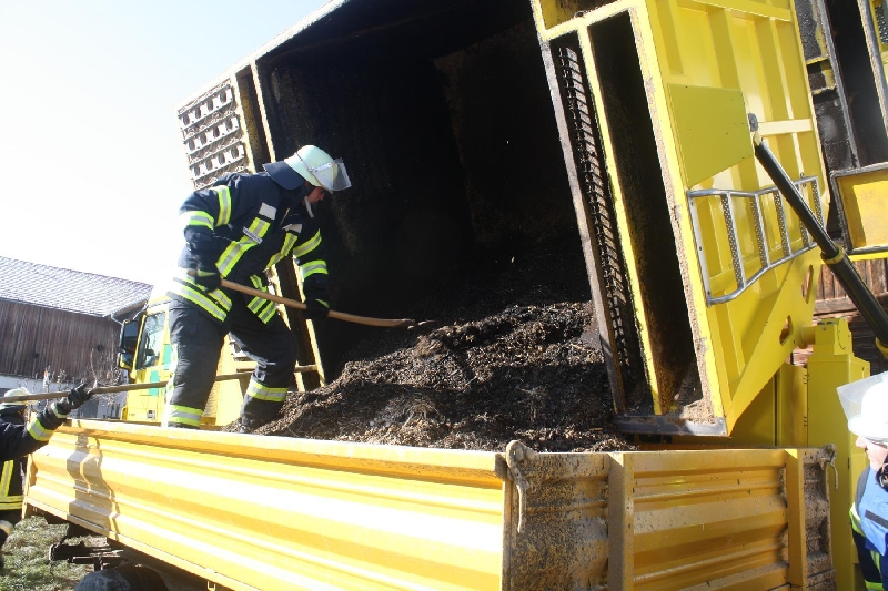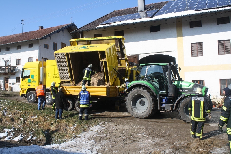 Aufgrund einer Rauchentwicklung wurde unsere Feuerwehr zur Untersuchung eines Brandes auf ein landwirtschaftliches Anwesen am Ortsrand alarmiert. Im Hackschnitzelbunker wurde schließlich ein Brandherd entdeckt, welches durch die Einsatzkräfte abgelöscht wurde. Mithilfe einer Spezialfirma wurde das Silo komplett abgesaugt.