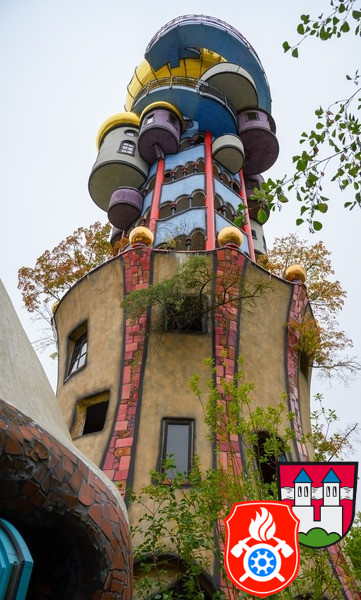 Frühmorgens am Samstag ging es gemeinsam per Bus zur ersten Station nach Abensberg in den Landkreis Kelheim. Dort angekommen machten wir eine Führung bei der Weissbierbrauerei Kuchlbauer. Bekannt ist die Privatbrauerei deswegen, da sich auf ihrem Gelände ein Hundertwasser-Kunstturm befindet. Die Verbindung der Brauerei mit dem Wiener Künstler war auch während der Führung immer präsent, da sich die Architektur in so ziemlich allen Räumen der Brauerei widerspiegelte.