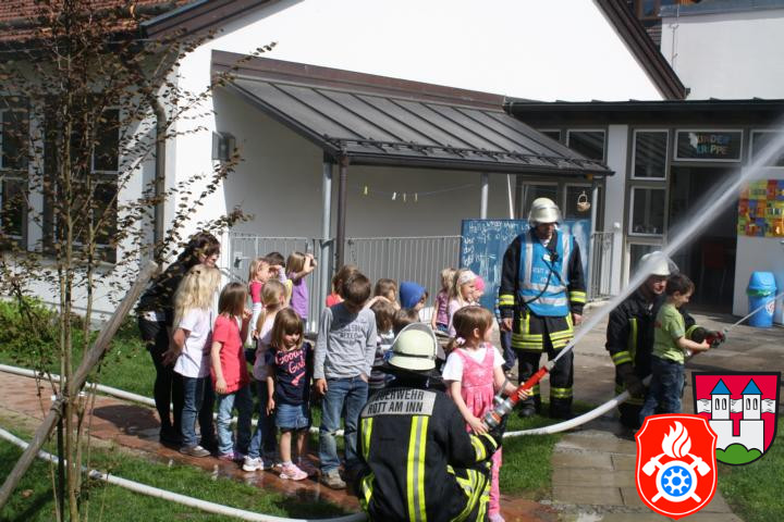 übung Kindergarten Alarm, Alarm! Es brennt! - Dieser Ernstfall wurde am Freitag, den 27. April im katholischen Kindergarten in Rott am Inn geübt.