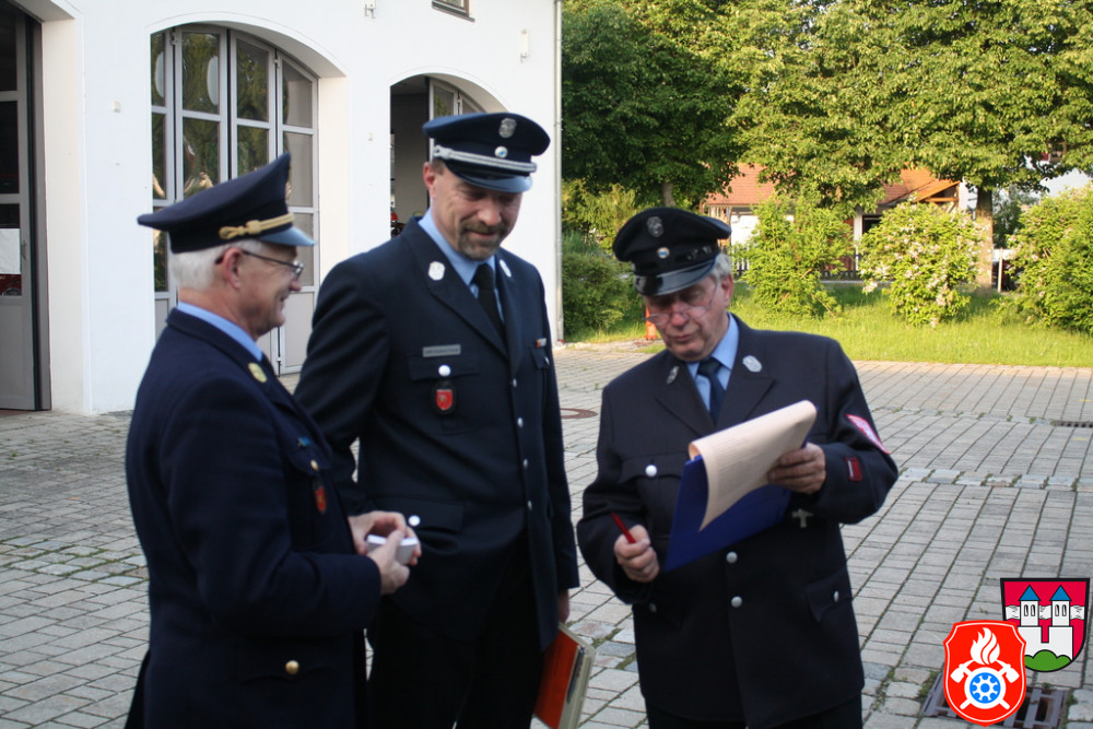 Mit anwesend waren 1. Bürgermeister Marinus Schaber, die Kommandanten Manfred Lunghammer und Marcus Huber, sowie die beiden Vorstände Sepp Riedl und Hans Gilg die der Gruppe anschließend zur bestandenen Leistungsprüfung, bei einer Brotzeit, gratulieren durften.