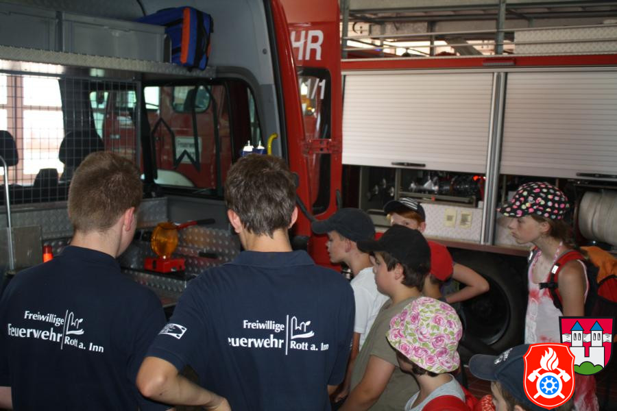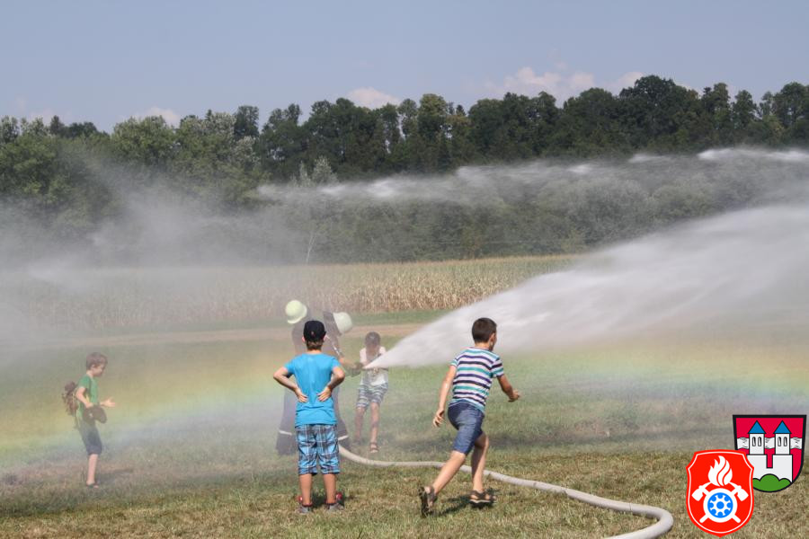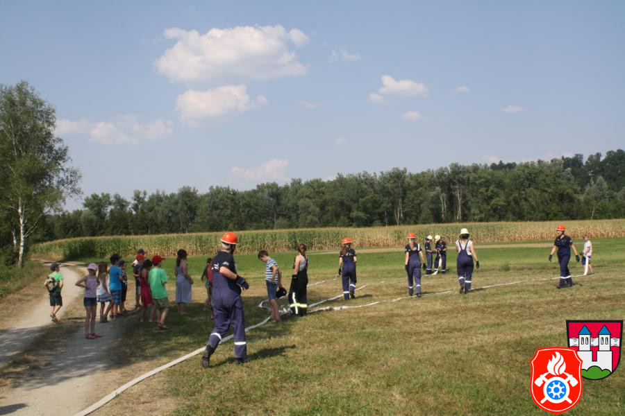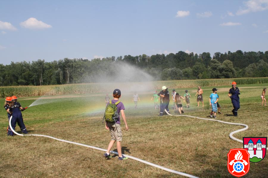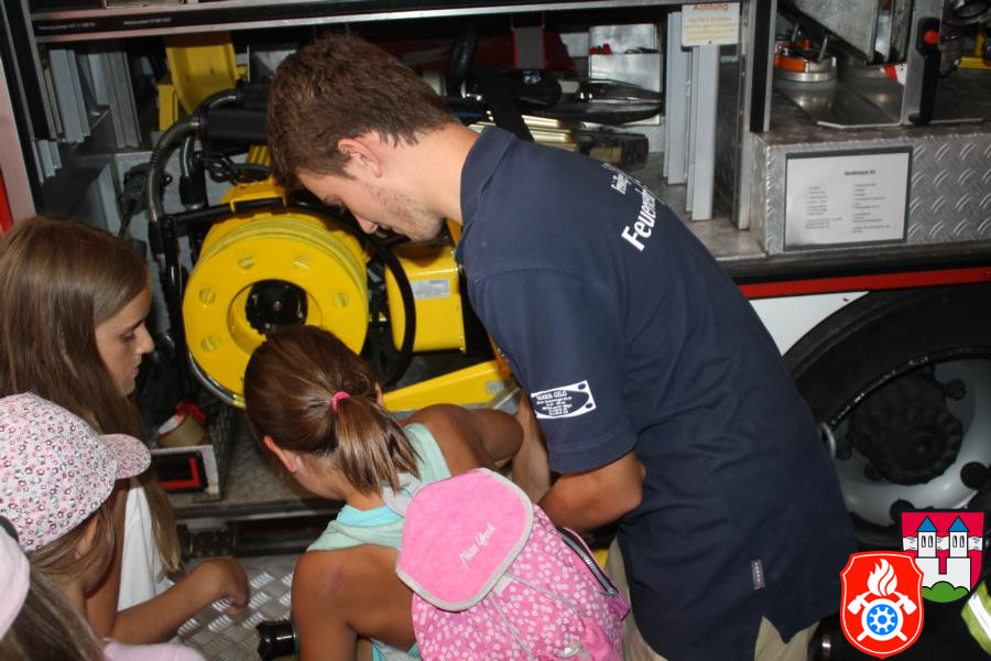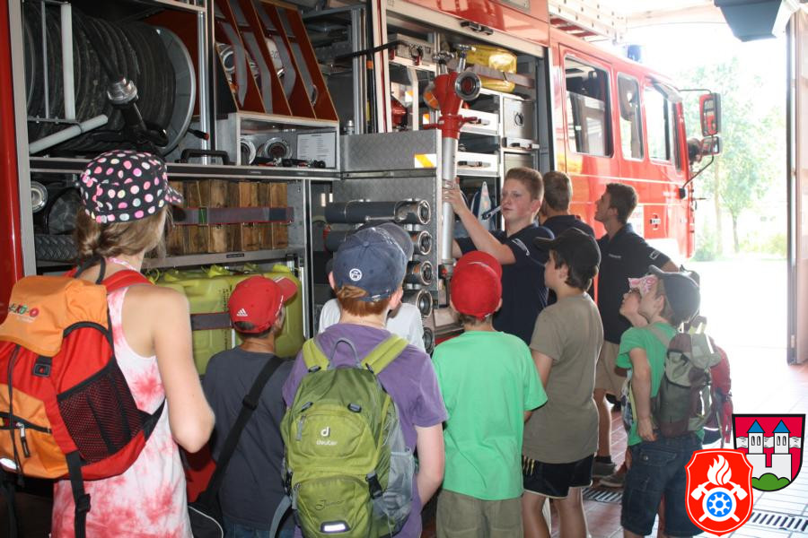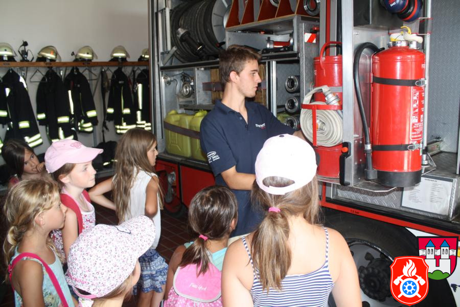 Ferienprogramm 2015 Am Mittwoch, dem 12.08.2015, fand bei uns ab 14 Uhr mal wieder das alljährige Ferienprogramm der Feuerwehr statt. Die anwesenden 21 Kinder wurden vom stellvertretenden Kommandanten Marcus Huber, den anwesenden Maschinisten und der Jugendfeuerwehr betreut. Gemeinsam wurde das Feuerwehrhaus und die verschiedenen Fahrzeuge mit deren Ausstattung besichtigt. Die Kinder hörten interessiert zu und stellten sogar die ein oder andere Frage, die von den jeweiligen Betreuern mit großer Freude beantwortet wurden.
