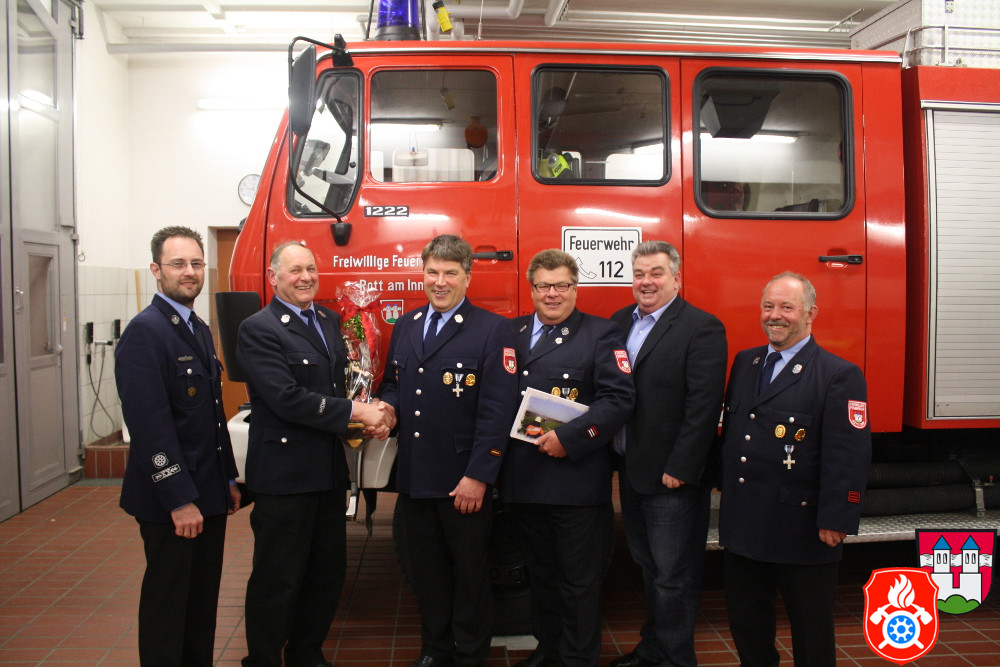 Eine ganz besondere Ehrung ging an Josef Springer. Er war 45 Jahre aktiv im Feuerwehrdienst tätig. Mit Erreichen der Altersgrenze scheidet man aus dem aktiven Dienst der Feuerwehr aus. 1971 begann Josef Springer seinen ehrenamtlichen Dienst. In den folgenden Jahren nahm er an vielen Weiterbildungen unter anderem zum Maschinisten und Gruppenführer teil. Josef Springer leitete als Gruppenführer 35 Jahre die erste Löschgruppe. Sepp hat mit seiner Erfahrung viel beigetragen wie die Feuerwehr jetzt ausgerüstet ist. Sein Amt übernimmt jetzt Herbert Lunghammer. Die Gemeinde und die Feuerwehr bedankten sich für 45 Jahre aktiven Dienst und viel Engagement. Der heilige Florian, Schutzpatron der Feuerwehren, wurde ihm zum Dank überreicht.