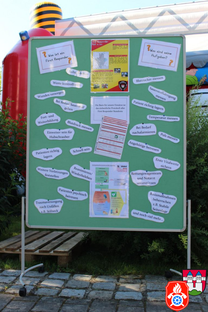 Die First Responder organisierten beim Eingang zum Sommerfest einen Infostand und informierten alle Interessierten über die Aufgaben und Verpflichtungen eines First Responders. Zudem hat die Gruppe ein kurzes Video mit Bildern der letzten 10 Jahre vorbereitet und abgespielt.
