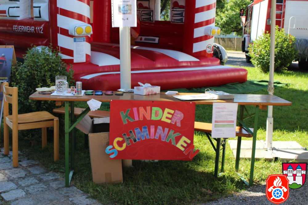 Auch unsere kleinen Besucher kamen nicht zu kurz und konnten sich austoben in der Feuerwehrhüpfburg, Fahrten im Feuerwehrauto und dem beliebten Kinderschminken.