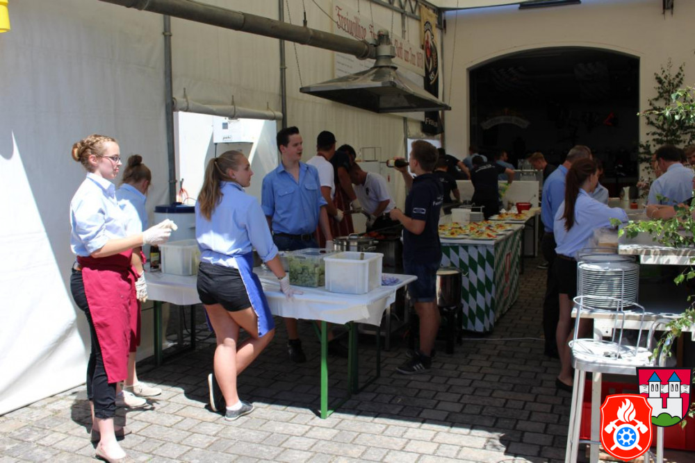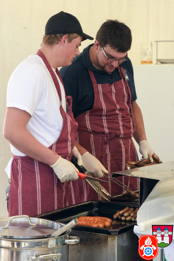 Der Tag begann ab 7.30 Uhr mit den letzten Vorbereitungen für das Fest. Unsere Jugendfeuerwehr übernahm das alljährliche Kartoffelschälen, zudem wurden die letzten Tische und Bänke aufgebaut.