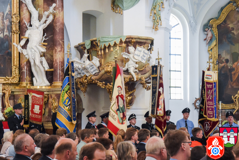 Pünktlich um 10.15 Uhr fand der Sonntag Gottesdienst statt, welcher von Diakon Simon Frank und Prälat Günther Lipok geleitet wurde. Hierbei wählte man als Schwerpunkt die Hilfe am nächsten und verknüpfte dies so, mit dem 10 jährigen Jubiläum der First Responder. Nach dem Gottesdienst bedankten sich der Kommandant Manfred Lunghammer, 1. Bürgermeister Marinus Schaber und Kreisbrandrat Richard Schrank bei allen Ehrenamtlichen und lobten nochmal das tolle Engagement und die Einsatzbereitschaft der First Responder.