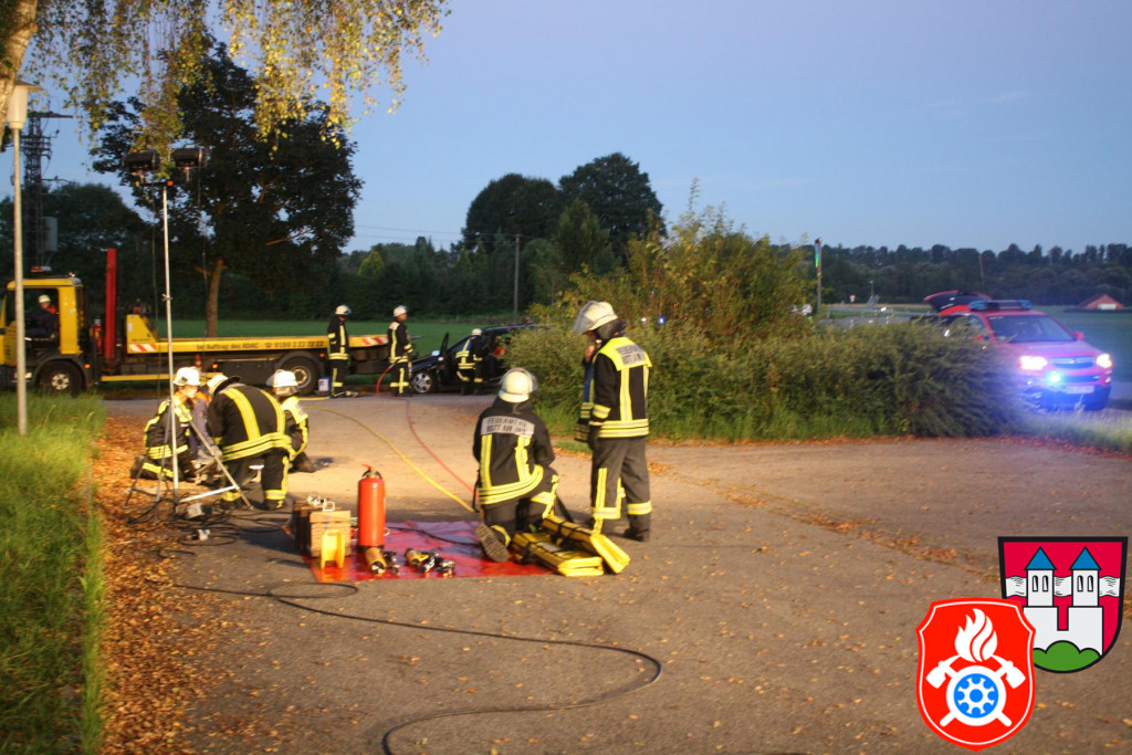 Um 20 Uhr wurde alle Fahrzeuge der Freiwilligen Feuerwehr Rott am Inn zu einem Verkehrsunfall mit PKW und LKW mit Gefahrgut sowie mit einem verletzten Fahrradfahrer alarmiert. Die First Responder sind als erstes an der Unfallstelle eingetroffen. Sie sicherten den Bereich des Unfalls bis zum Eintreffen der Feuerwehr ab und haben sich über die Ausmaße des Unfalls vergewissert. Natürlich wurde hierbei auch die schnelle Erstversorgung der fünf Verletzten (ein LKW-Fahrer, drei Auto-Insassen und ein Radfahrer) eingeleitet.