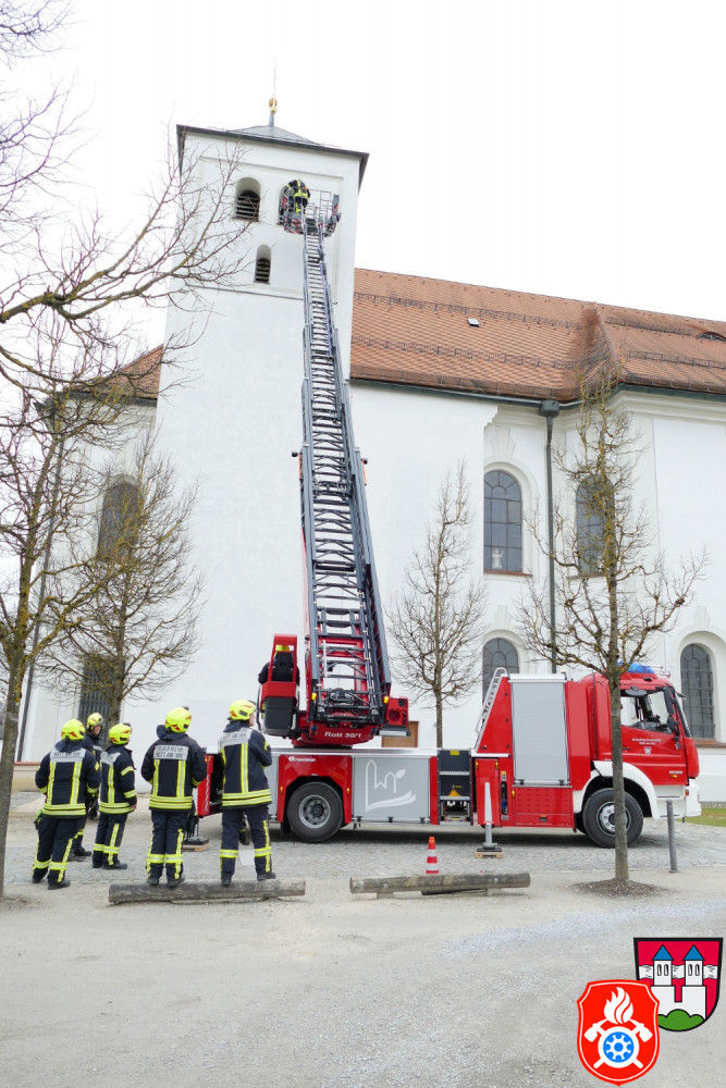 Die Ausbildung wurde von der Firma Rosenbauer durchgeführt, bei der wir die Drehleiter gekauft haben. Nach kurzer theoretischer Ausbildung wurde gleich praxisbezogen am Hubrettungsgerät geübt.