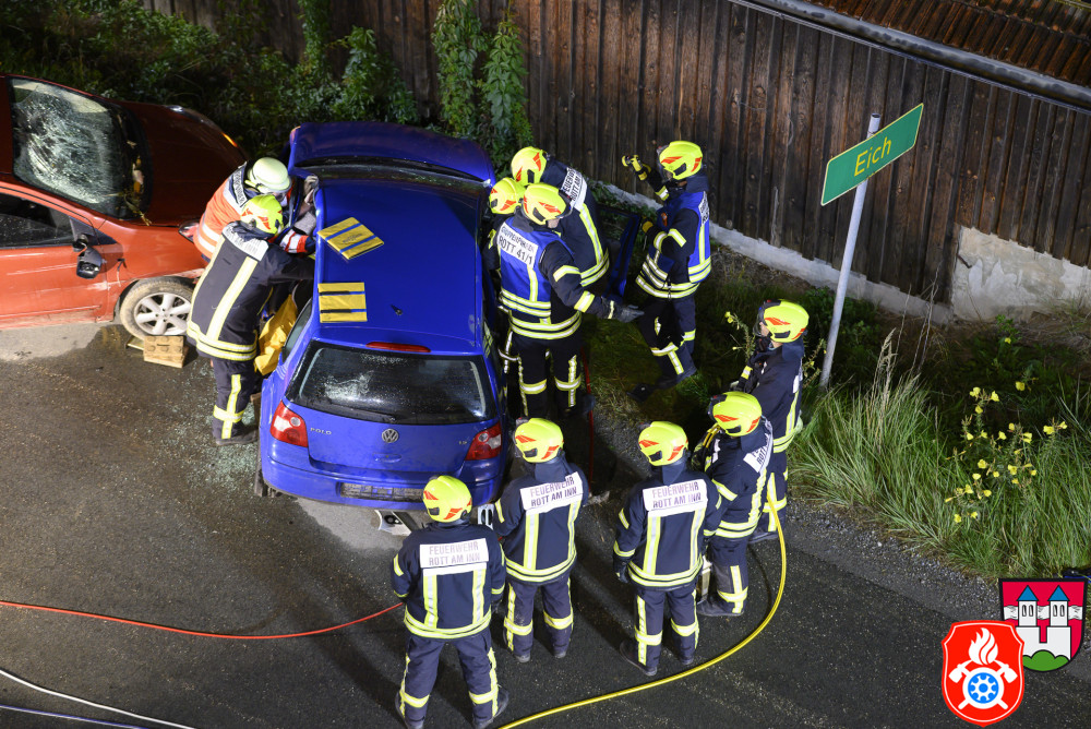 Durch die nahe B15 und der Unfallhäufungsstelle „Griesstätter Kreuzung“ sind wir bereits öfters gemeinsam mit unseren Nachbarfeuerwehren zu einem Verkehrsunfall gerufen worden. Am Dienstag, den 17.09.2022, wurde die Feuerwehr Ramerberg zu einer Gemeinschaftsübung in den Weiler „Eich“ eingeladen.