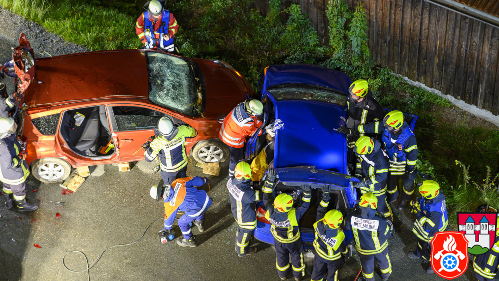 Es wurden 3 PKWs im Bereich des Sägewerks Ametsbichler so präpariert, dass es nach einen folgenschweren Verkehrsunfall aussah. Vier Junge Feuerwehrler wurden mit Schminke als Verletzte in den Autos dargestellt um den Einsatz sehr realitätsnahe zu gestalten. Die Verletzen wurden durch den First Responder Rott versorgt und die PKWs wurden fachmännisch zur Patientenrettung zerlegt. Nach der Übung wurde die gute Zusammenarbeit besprochen und der ein oder andere Hinweis zur Optimierung eines Einsatzes gegeben. Wir bedanken uns bei der Feuerwehr Ramerberg für die gute Kameradschaft und hoffen auf viele weitere gemeinsame Übungen und wenig Einsätze.