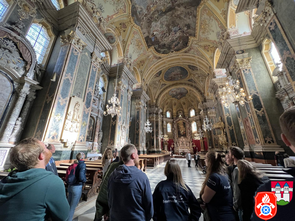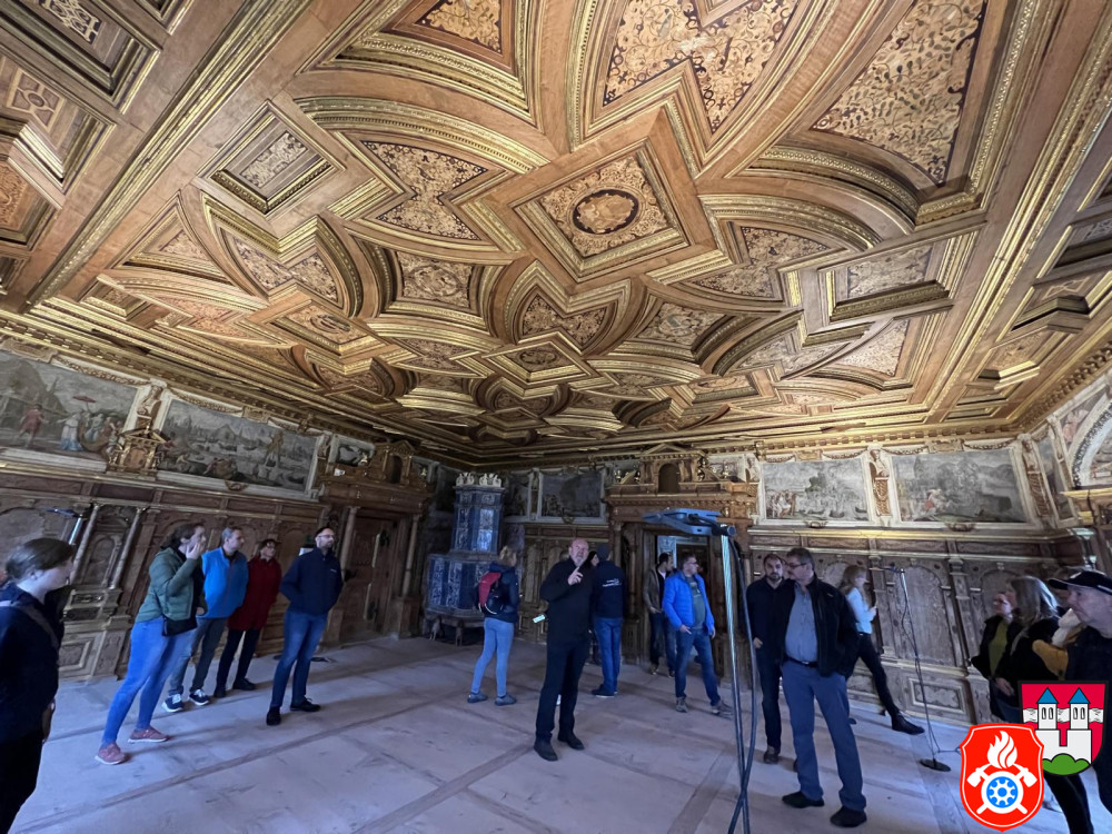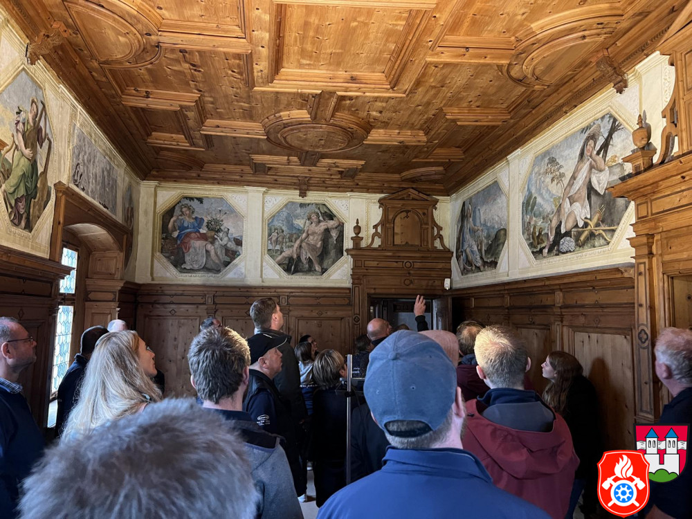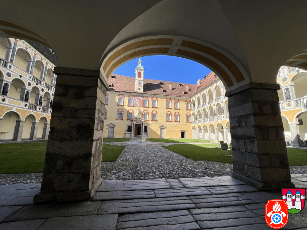 Begonnen haben wir diesen Besuch natürlich am Feuerwehrhaus. Dort besichtigten wir deren Technik und suchten natürlich auch das freundliche Gespräch mit den Kameraden aus Italien. Nach einer kleinen Geschenkübergabe durch unseren ersten Bürgermeister Daniel Wendrock und Vorstand Herbert Lunghammer an den Bürgermeister von Feldthurns, Konrad Messner, ging es für uns zum Schloss Feldthurns. Auch dort erhielten wir eine sehr interessante Führung durch das Anwesen, welches viele Jahrhunderte als Sitz der Fürstbischöfe von Brixen gedient hatte.