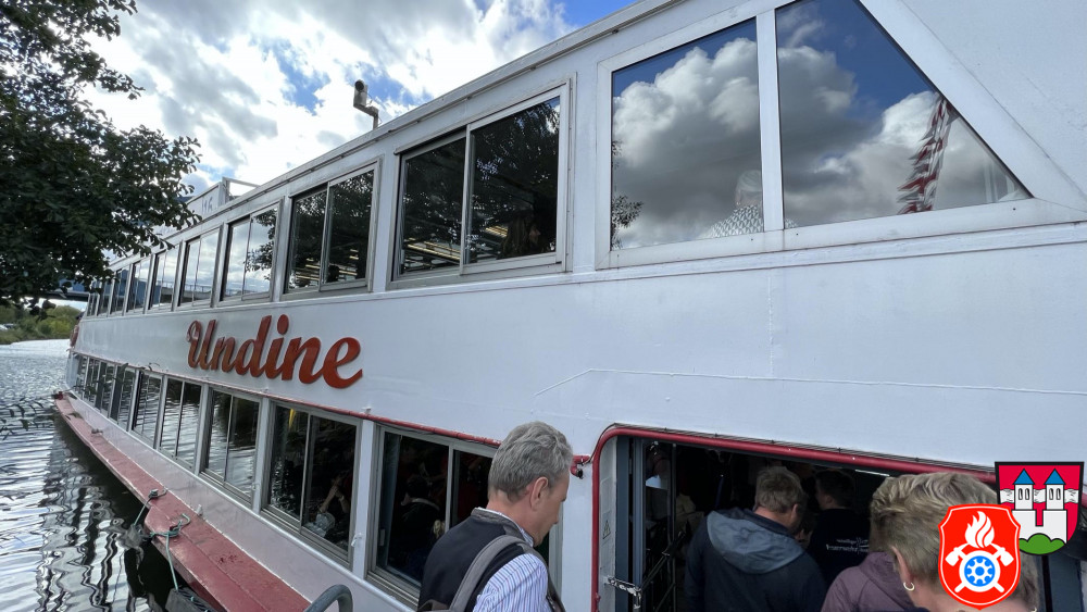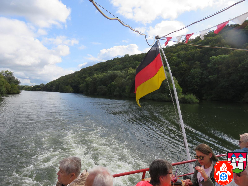 Am 23. und 24. September war es wieder soweit - unser jährlicher Feuerwehrausflug stand an. Dieses Mal machten wir uns gemeinsam auf den Weg nach Unterfranken. Nach einer entspannten Busfahrt erreichten wir unser erstes Ziel: Die Schiffsanlegestelle in Volkach. An Bord des Schiffes "Undine" machten wir zur Einleitung unseres Ausfluges eine Schöne Rundfahrt auf der Mainschleife zwischen fränkischen Weinbergen.