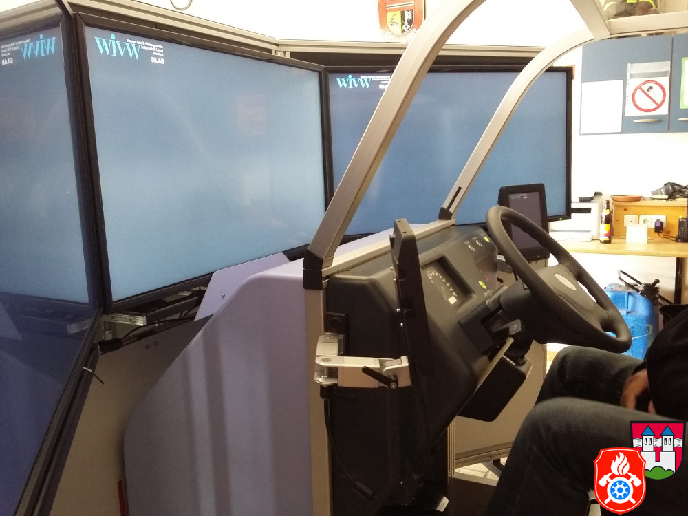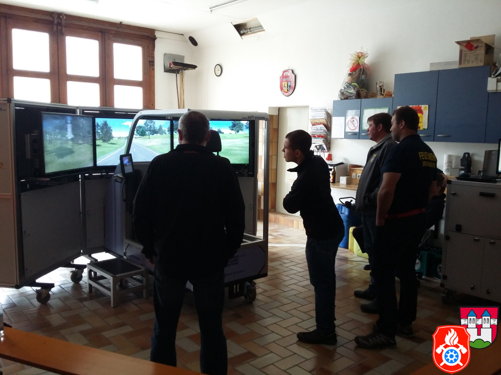 Nach einer Auffrischung der Rechtsgrundlagen für Feuerwehren im Straßenverkehr konnten am Simulator verschiedene Szenarien durchgespielt werden. Mehrere Computer erstellten eine Virtuelle Stadt, durch welche man mit einem Einsatzfahrzeug manövrieren musste.