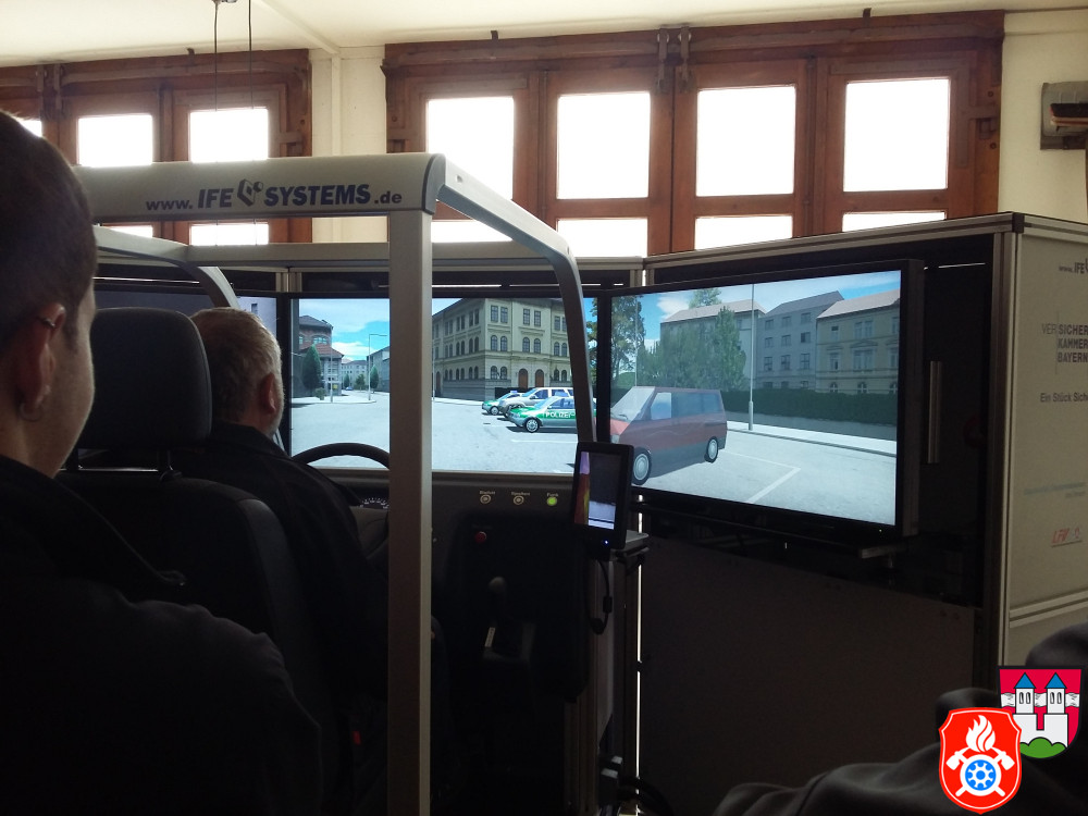 Fahrsimulator Am Mittwoch, den 3.5.2017 durften 2 Kammeraden der Feuerwehr Rott zusammen mit 4 weiteren Kammeraden aus dem Landkreis Rosenheim bei einem Ausbildungsprogramm des Landesfeuerwehrverbandes Teilnehmen. Die Versicherungskammer Bayern zusammen mit dem Bayerischen Staatsministerium des Innern, haben ein Trainingsprogramm ins Leben gerufen, bei dem Einsatzfahrten realistisch an einem Fahrsimulator geübt werden können.
