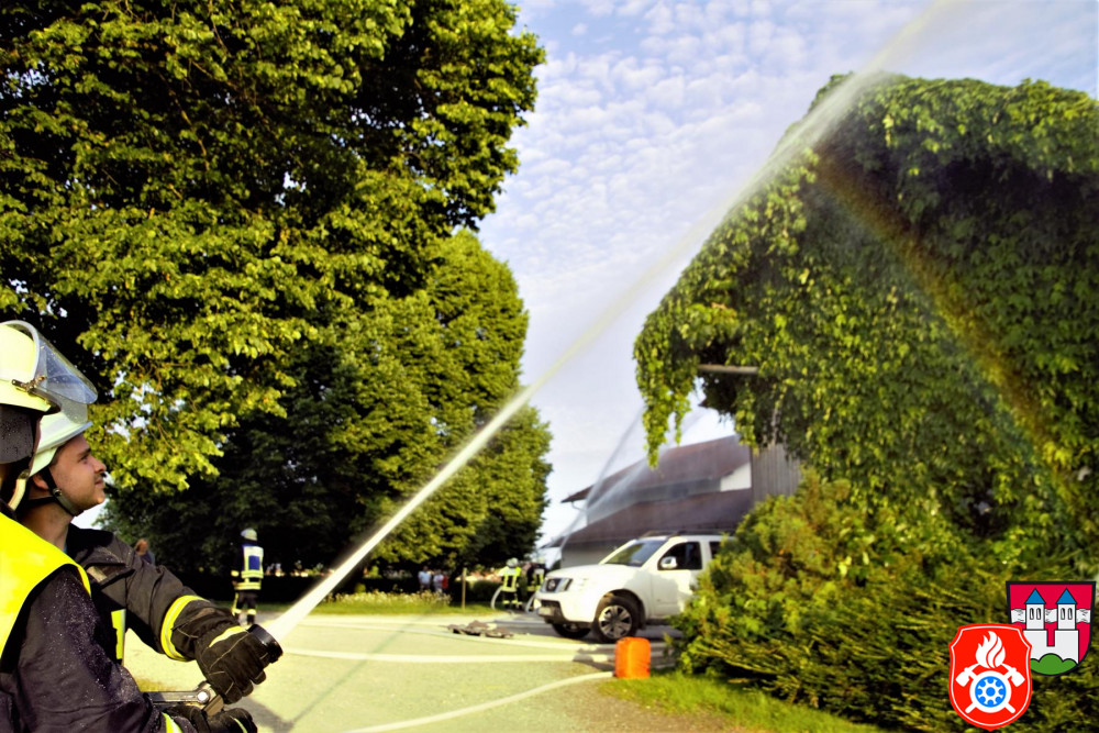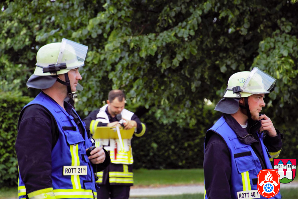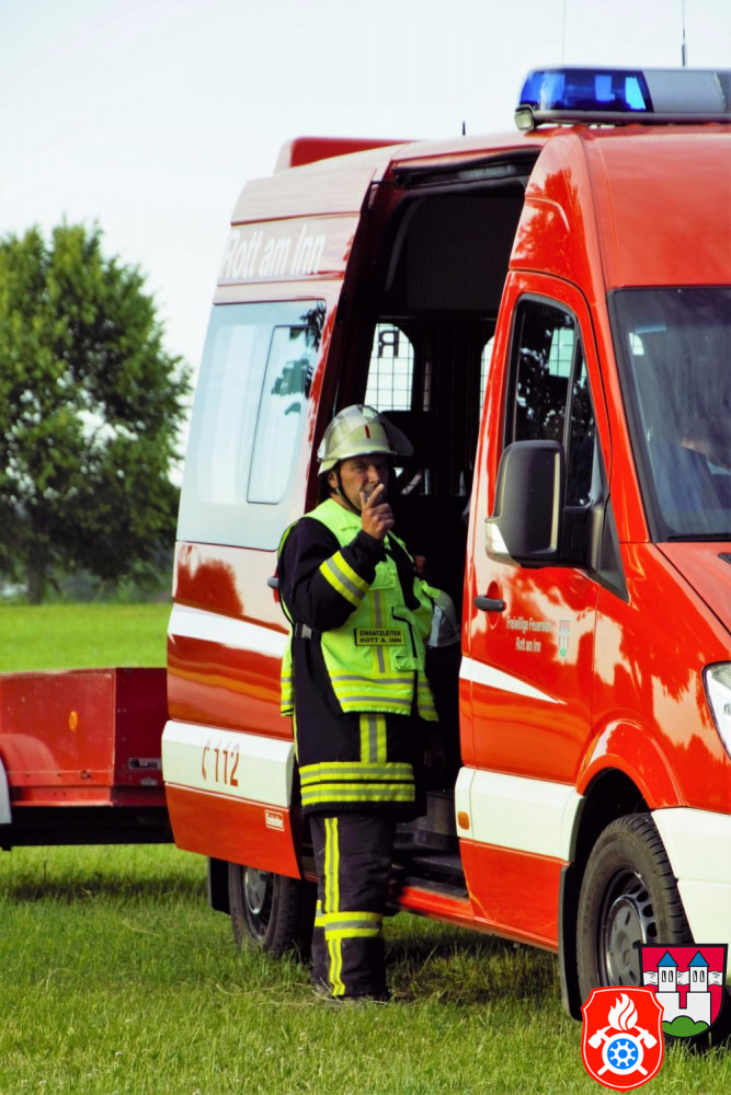 Mit insgesamt 37 Kammeraden aus Rott und 15 Kammeraden aus Emmering wurde das landwirtschaftliche Anwesen, welches auch eine Schreinerei im ehemaligen Stall beherbergt, an der westlichen Ortsgrenze von Rott am Inn aufgesucht. Unser erhaltenes Meldebild war eine Brandentwicklung mit drei vermissten Personen.