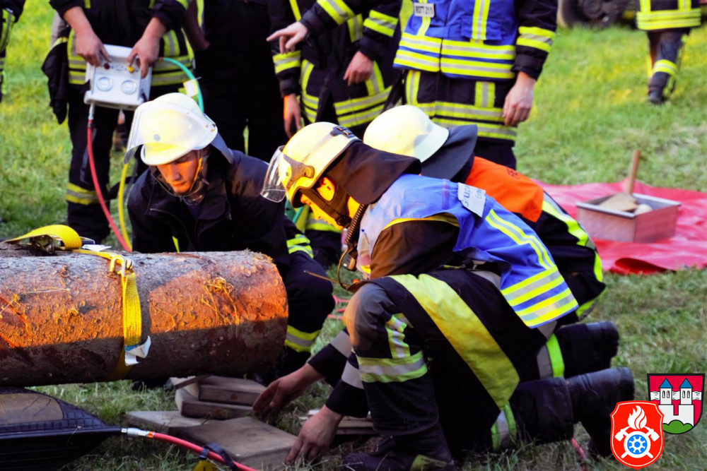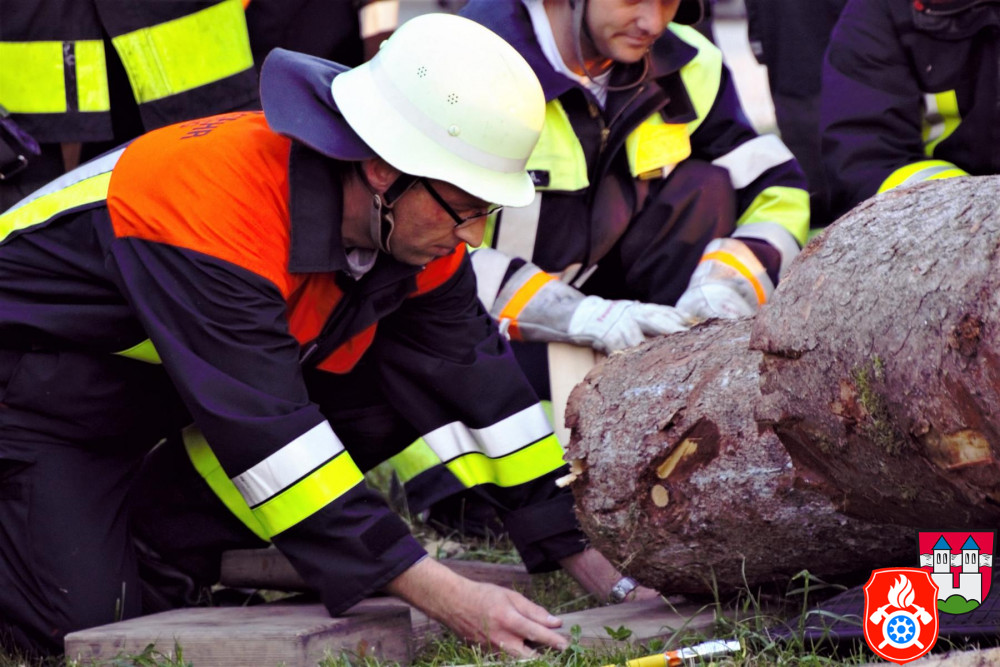 Nach der Brandübung wurde von unserem Kommandanten Manfred Lunghammer noch eine technische Hilfeleistung vorbereitet. Eine Person wurde unter mehrere Baumstämme eingeklemmt. Diese galt es nun sorgfältig mit unserem Hebekissen zu befreien. Gemeinsam mit unseren First Respondern und den Kammeraden aus Rott und Emmering wurden die Baumstämme gesichert und an den richtigen Lastpunkten angehoben. So konnte die Person erfolgreich befreit werden.