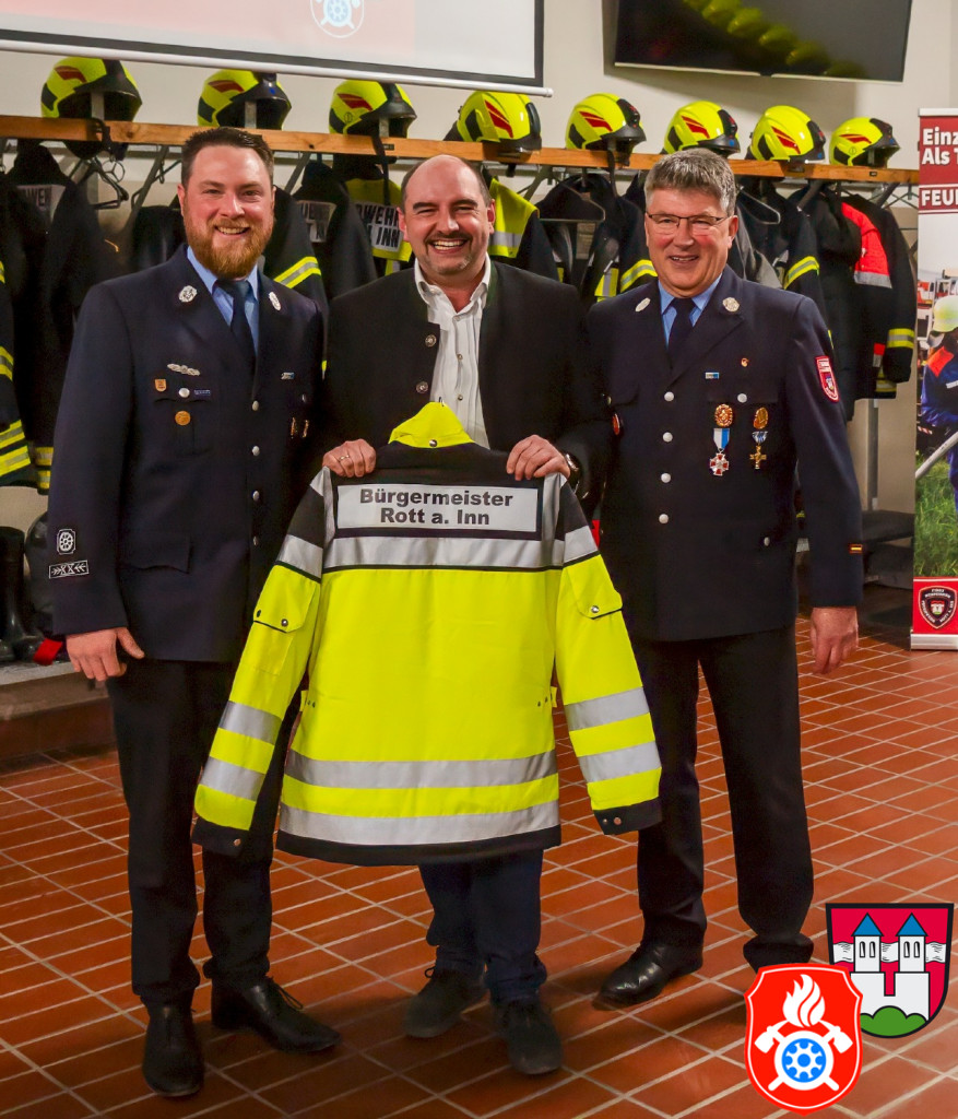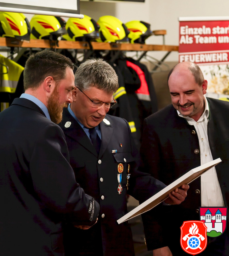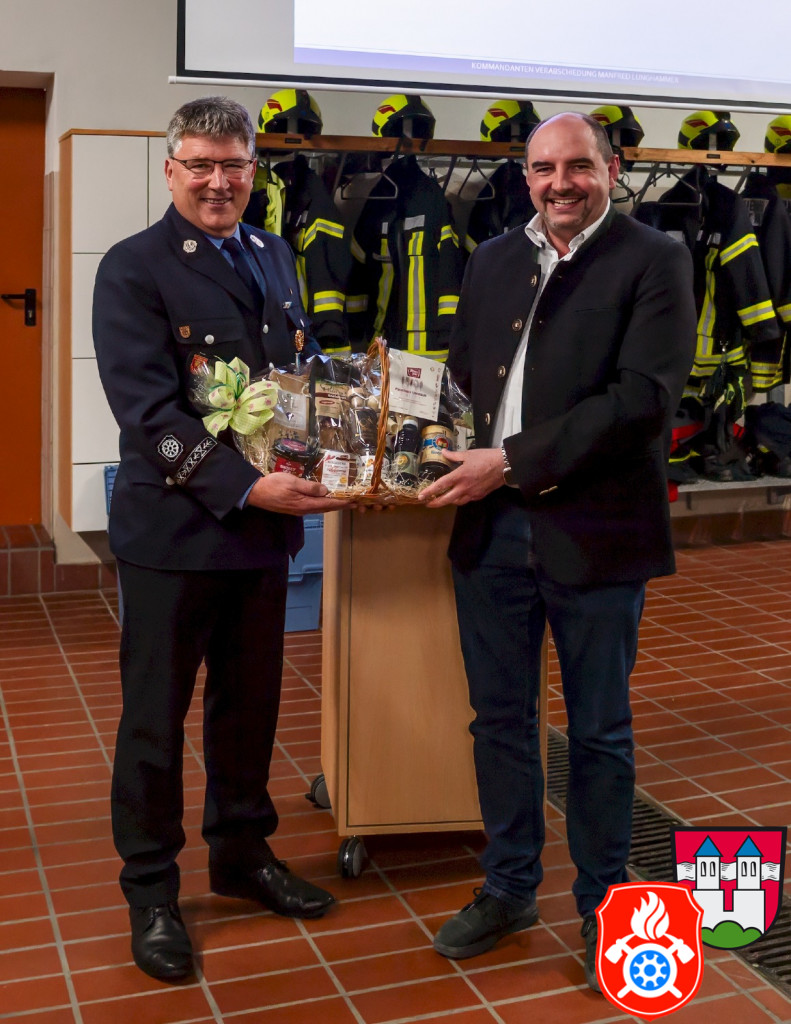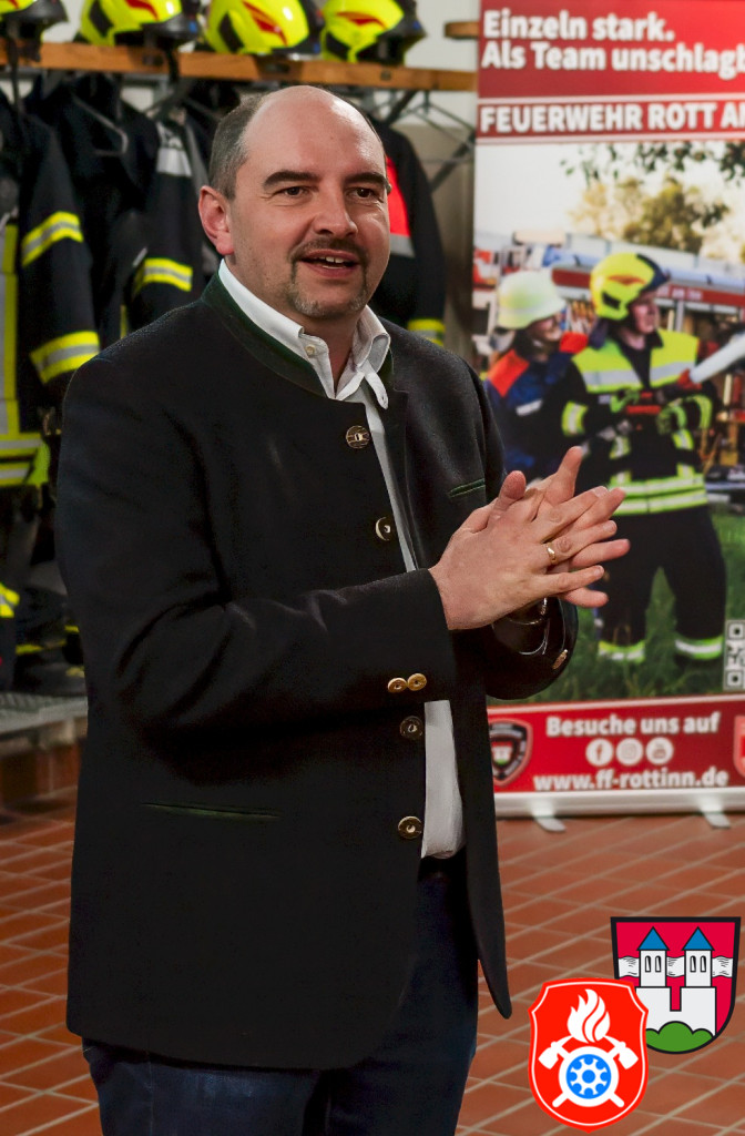 Bürgermeister Daniel Wendrock erinnerte in seinen Grußworten an den Moment vor ca. 18 Jahren, als der damalige Bürgermeister Georg Maier ihm den frisch gewählten Kommandanten Manfred Lunghammer vorstellt. Wendrock hatte nämlich kurz nach der Wahl seinen ersten Arbeitstag als Geschäftsstellenleiter in der Gemeindeverwaltung. Ab 2020 ist er Bürgermeister. Seit er in unserer Gemeinde ist kannte er somit nur Manfred als Kommandanten, er konnte sich bis jetzt also noch garkeine andere Person in diesem Amt vorstellen. Er bedankte sich im Namen aller Bürgerinnen und Bürgern herzlich für seine Leistungen.