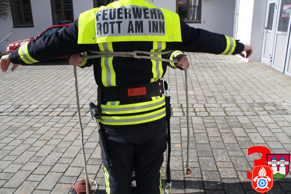 Der Brustbund wird bei der Feuerwehr verwendet, um Personen gegen Absturz zu sichern, z.B. wenn eine zu rettende Person über eine Leiter herabsteigt. Wichtig ist dabei, daß das Seil immer stramm gehalten wird, damit die Person nicht frei fällt. Dies nennt man dann statisches Halten. |