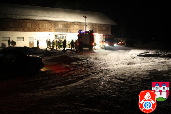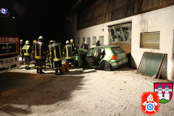 PKW kam von Straße ab und prallte gegen Stalltüre. |