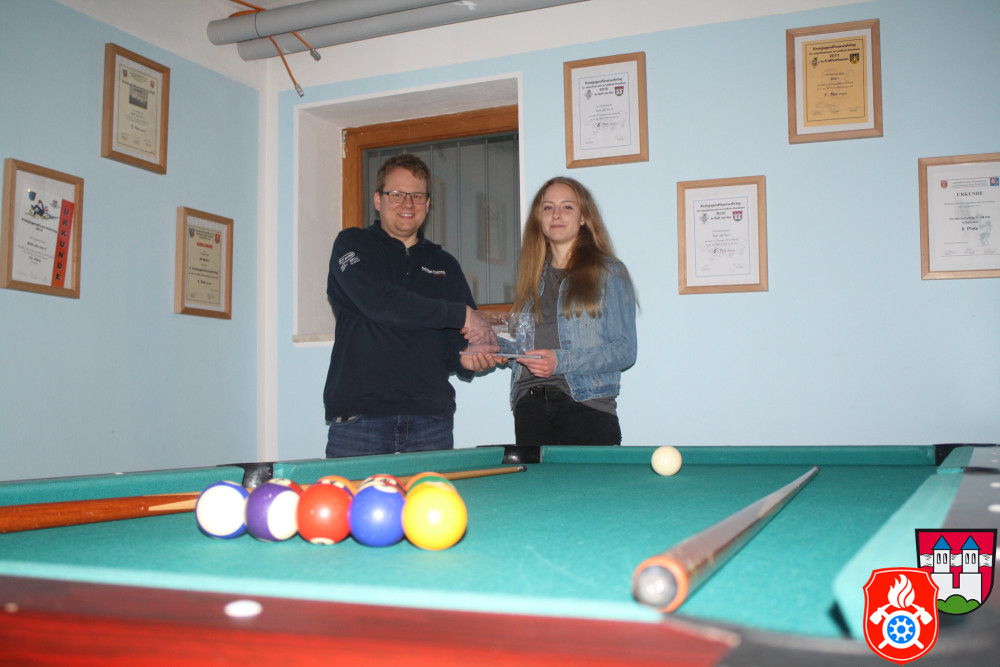 Im Finale setzte sich Angelika Schaber gegen Felix Renner durch. Zu ihrer Freude wurde ihr eine Urkunde und ein Wanderpokal überreicht.