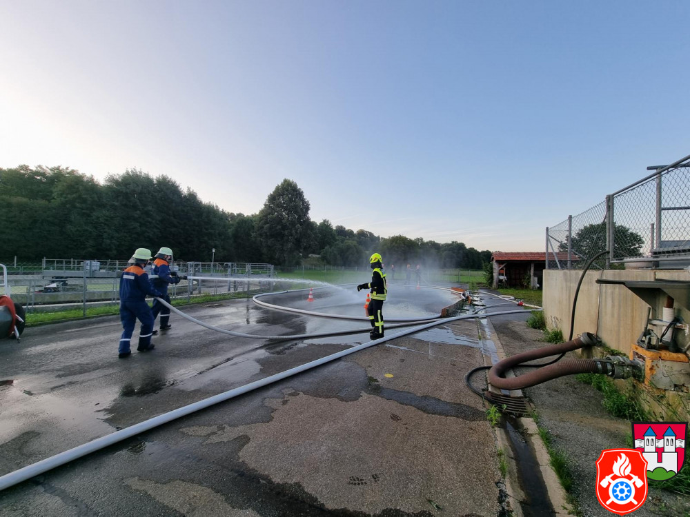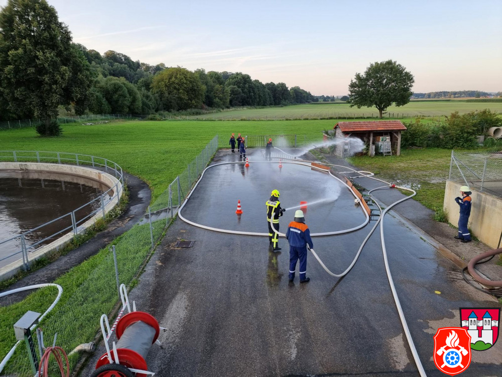 Unsere Jugendwarte nannten das Ganze „spielerisches Lernen“ und uns macht es einfach nur sehr viel Spaß. Als Begrenzung wurden B-Schläuche mit Wasser befüllt und als Tor haben wir Verkehrsleistkegel aufgebaut. Gespielt wurde geschlechtergetrennt in zweier Teams. Die Begeisterung nahm während des Spiels überhand und der Sinn des Spiels „der Ball muss ins Tor“ änderte sich zu „wer wird am meisten Nass“.