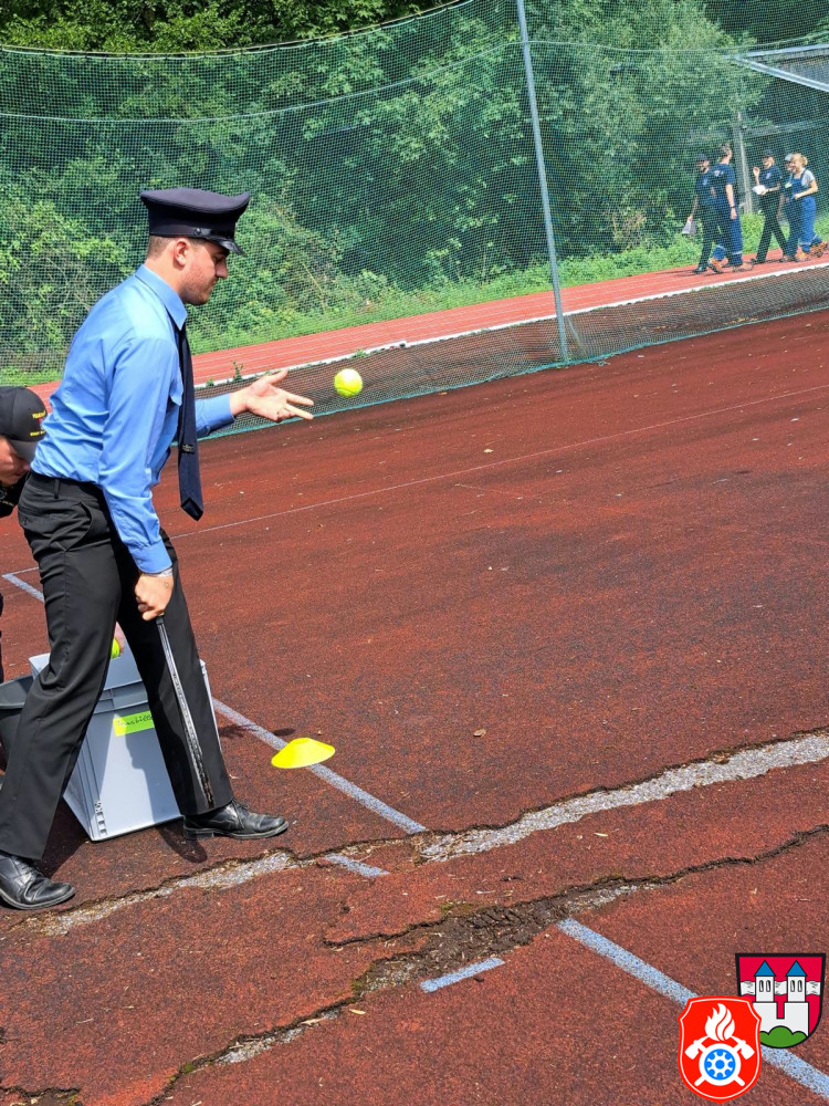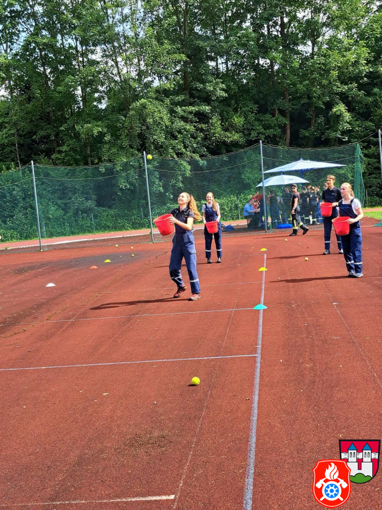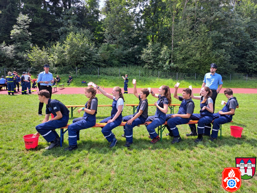Zum Beispiel mussten wir gemeinsam mit einer anderen Jugendgruppe einen Wassertransport über unsere Köpfe nach hinten machen. Dabei stellten wir einen neuen Rekord auf. Andere Aufgaben waren Gummistiefel-Weitwurf, Dart, Schlauch aufrollen und kegeln, unseren Jugendwart mit nassen Schwämmen bewerfen, verschiedene Knoten und noch viele weitere. Für unsere Leistungen ergatterten wir den 14. Platz. Da es für uns die erste Teilnahme am Kreisjugendfeuerwehrtages war sind wir mit unserem Ergebnis mehr als zufrieden.