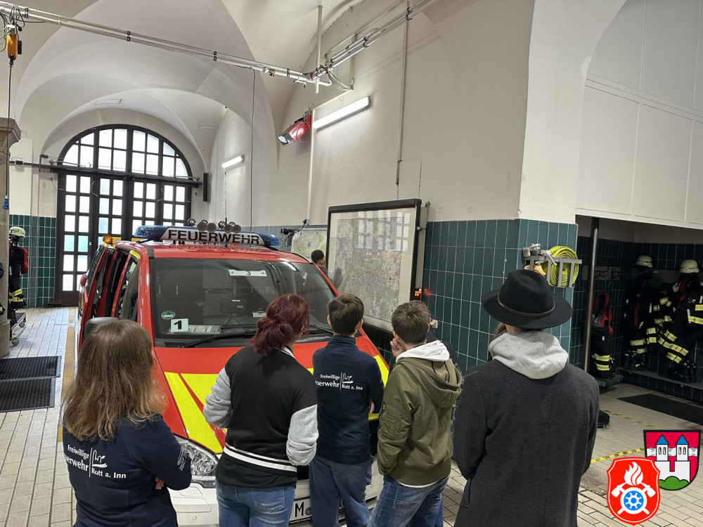 Wir durften uns die verschiedenen Fahrzeuge ansehen und bekamen eine Führung durch das Feuerwehrhaus. Während unseres Aufenthaltes gingen mehrere Alarme bei der Hauptwache ein, sodass bis zum Ende der Führung das Feuerwehrhaus leer war. Alle Fahrzeuge waren im Einsatz.