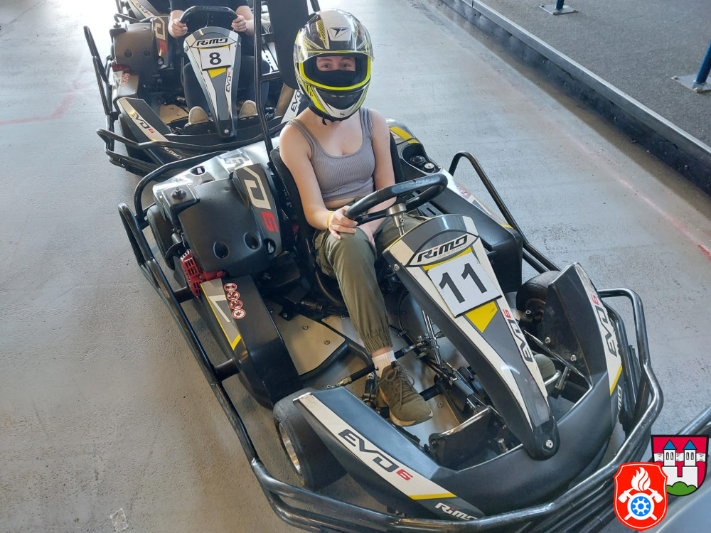 Dort wurden wir mit Sturmhaube und Helm ausgerüstet. Nach einer kurzen Einweisung gings auch schon los auf die Rennstrecke. Für ca. 50 min hatten wir die Bahn für uns. Nach einem spannenden Rennen, erzielte unser 1. Jugendsprecher Philip den ersten Platz. Dicht gefolgt von unserm Jugendwart Georg. Den 3. Platz absolvierte Anna W. Ein Teil der Gruppe war das erste Mal auf einer Kartbahn. Dies war jedoch nach der Anfangsrunde nicht weiter erkennbar. Alle hatten sehr viel Spaß und gaben gut Gas