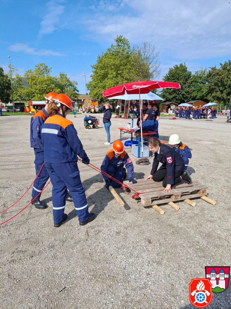 Von Tragerl-Stapeln über Knotenbinden bis hin zum Leinensackerl-Werfen – bei verschiedensten Stationen konnten wir unser Können unter Beweis stellen. Nach all der Anstrengung stärkten wir uns bei einem wohlverdienten Mittagessen.