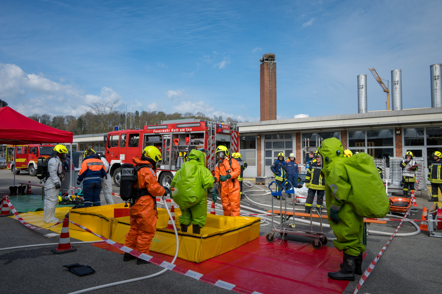 Parallel dazu wurde ein Dekontaminationsplatz aufgebaut, um die betroffenen Personen vom Gefahrstoff zu reinigen. Durch den Einsatz weiterer Trupps konnten schließlich auch die letzten Personen gerettet und in Sicherheit gebracht werden. Zudem gelang es, die Gefahrstoffe unter Kontrolle zu bringen und zu beseitigen.