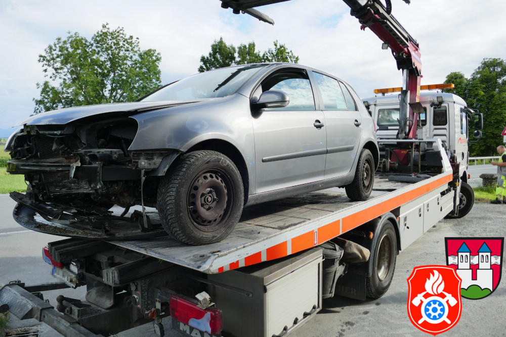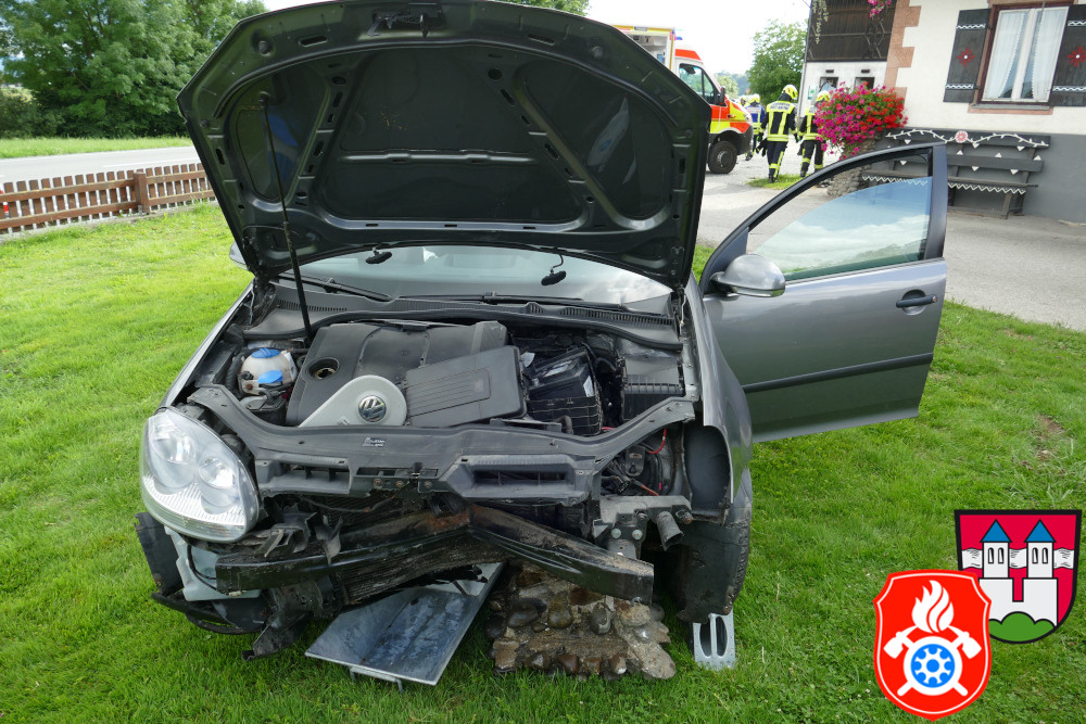 Verkehrsunfall an der B15 in Lengdorf. Ein PKW kam von der Fahrbahn ab und durchbrach einen angrenzenden Gartenzaun.