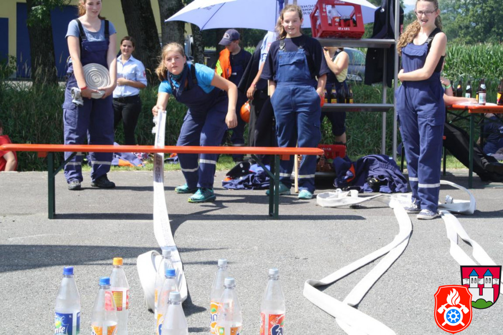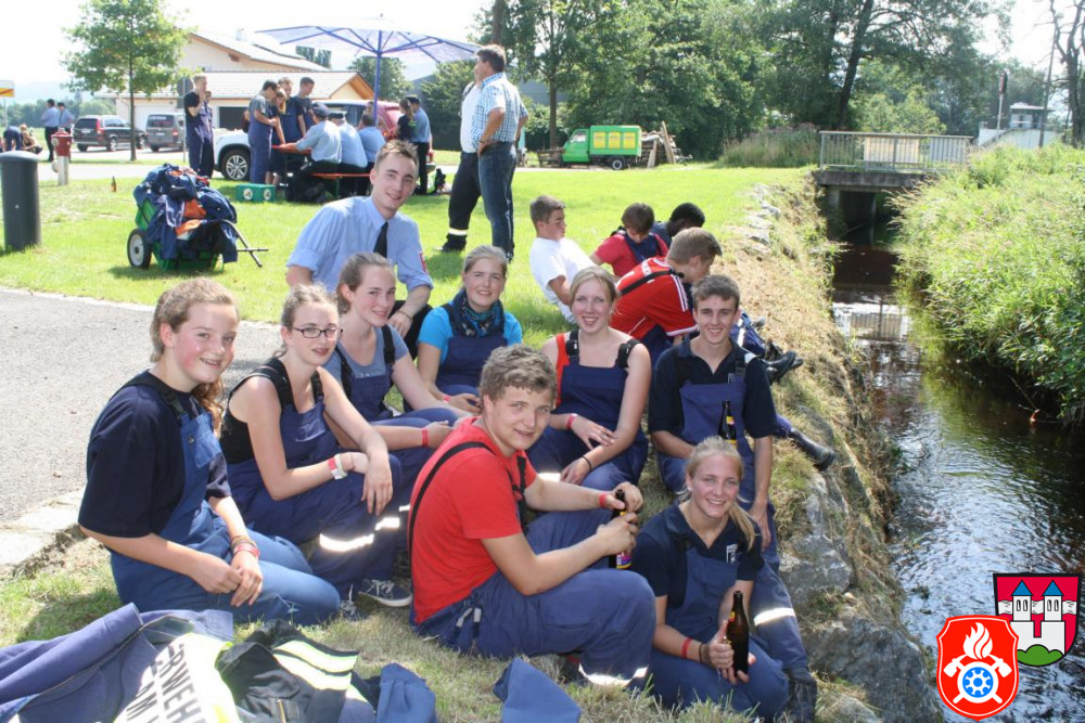 von der Feuerwehr Schönau, am 17. Kreisjugendfeuerwehrtag in Raubling teil, die in vier Teams zu je vier