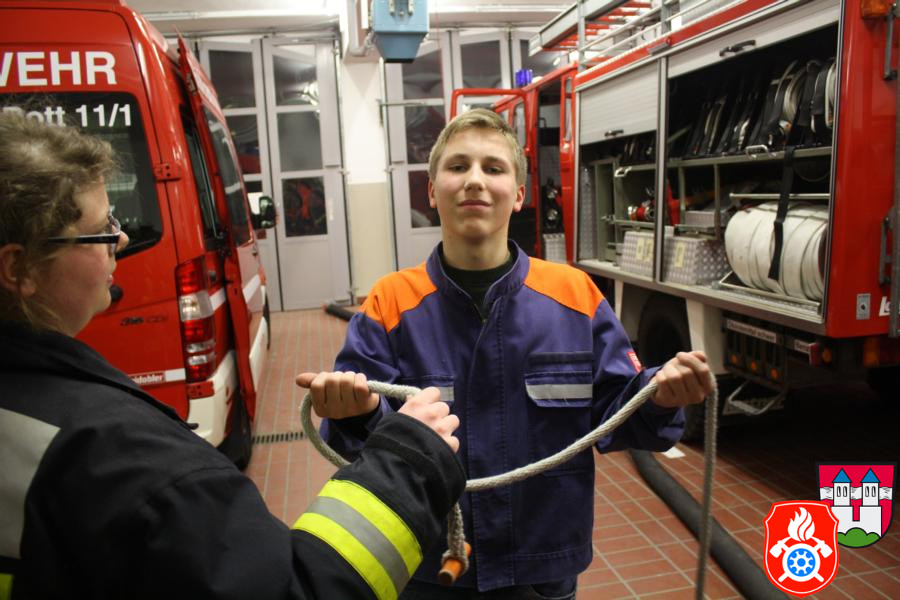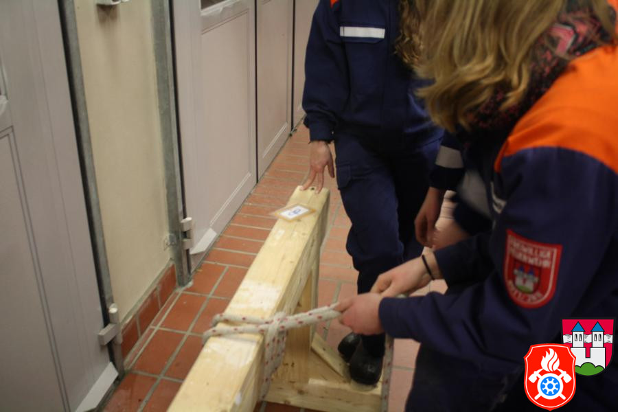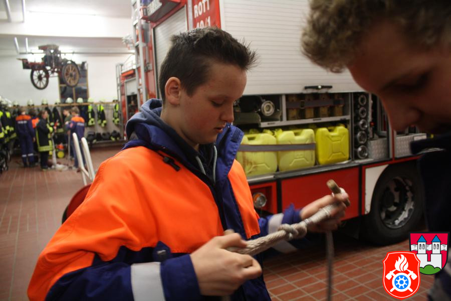 An diesem Abend drehte sich alles um die wichtigsten Knoten der Feuerwehr, wie den Mastwurf am Saugschlauch, Mastwurf am Strahlrohr, Mastwurf an der Feuerwehraxt, den Zimmermannsschlag, den Rettungsknoten, den Kreuzknoten, den doppelten Ankerstich und viele weitere...