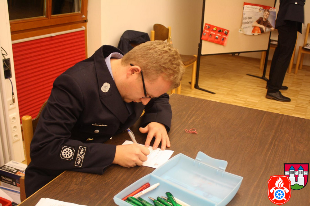 Dieses Jahr wurde das Wissen der Jugendlichen zum Thema „Rechte und Pflichten der Feuerwehr“, „Jugendschutz“ sowie die „Organisation der Feuerwehr“ schriftlich und mündlich unter Beweis gestellt. Welche Rolle hierbei der Feuerwehrkommandant spielt, welche taktischen Einheiten es im Einsatz gibt oder was der Kreisbrandrat für Aufgaben hat – das Alles war unter anderem Bestandteil der Prüfung. Am Ende des in sechs Stufen aufgeteilen Testes konnte Kreisjugendfeuerwehrwart Manuel Pöhmerer schließlich die erhoffte Nachricht überbringen: „Ihr habt alle bestanden, herzlichen Glückwünsch“. Zum Schluss bekam jeder der insgesamt über 80 Teilnehmer noch seine Urkunde und sein Abzeichen überreicht.