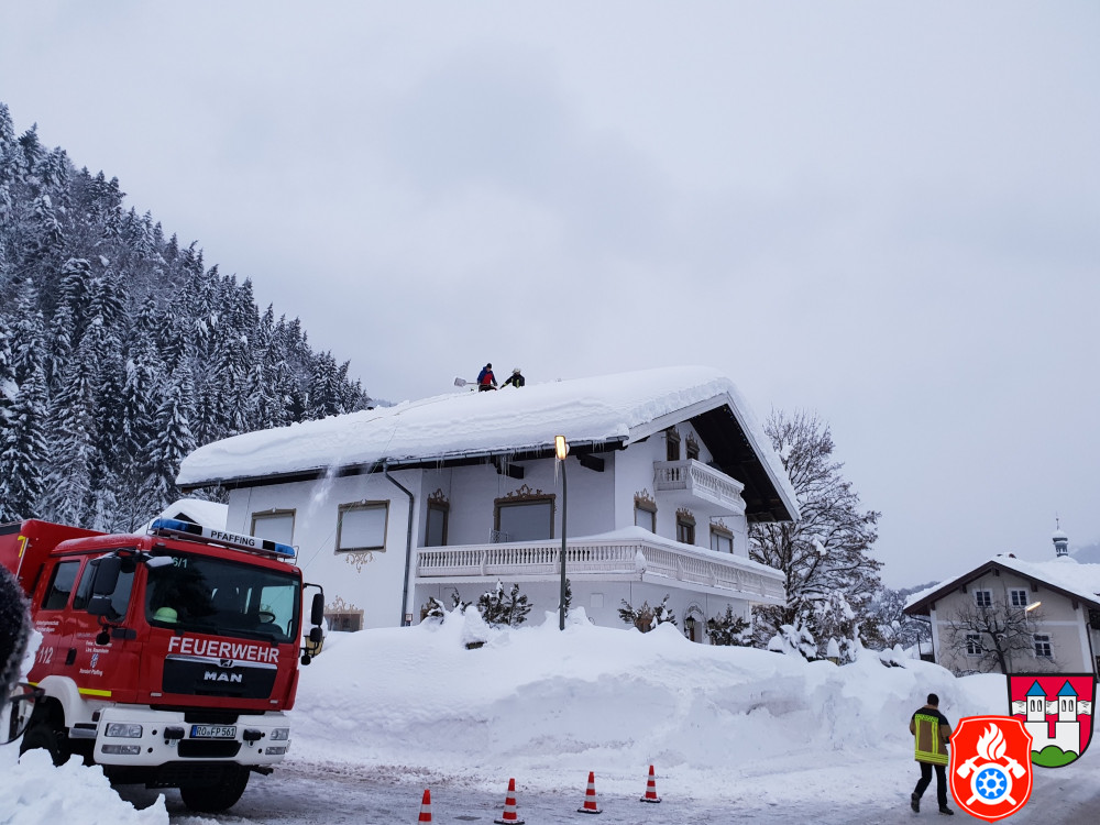 Tätigkeitsbericht der Feuerwehr:Am Freitag den, 11.01.2019 wurde unsere Feuerwehr nach Sachrang im Chiemgau alarmiert. Aufgrund der starken Schneefälle in den letzten Tagen mussten viele Dächer von der schweren Schneelast befreit werden. Um die Einsatzkräfte vor Ort zu unterstützen alarmierte die integrierte Leitstelle Rosenheim deshalb weitere Einsatzkräfte.