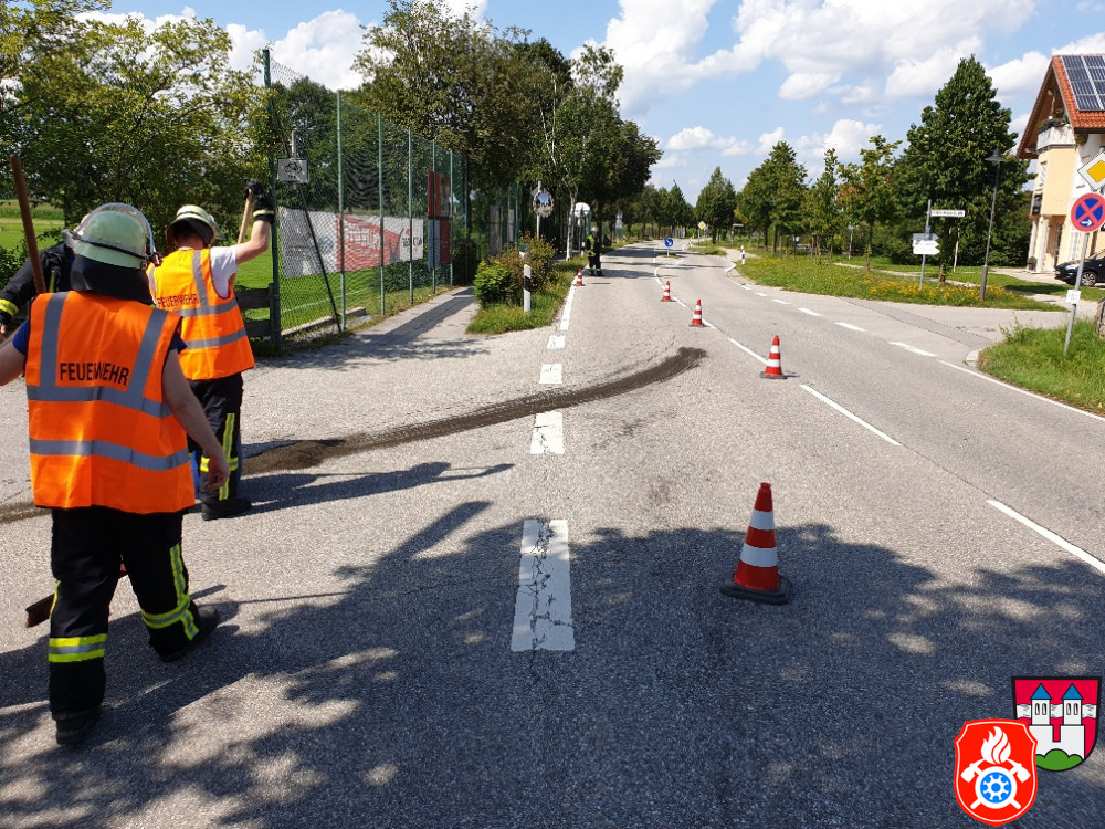 Auf einer Strecke von rund 1,7 Kilometern ersteckte sich auf der Haager Straße von Höhe der Rotter Schule bis zum Weiler Au eine Ölspur. Trotz eingesetzem Ölbindemittel an den schweren Verschmutzungsstellen war eine Reinigung der Straßenoberfläche durch eine Spezialfirma unumgänglich. Der Wagen des Unfallverursachers wurde abgeschleppt.jz