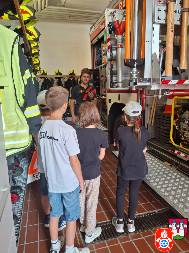 Bei der Kriechstrecke ging es auf allen Vieren durch enge, dunkle Gänge – ganz wie im echten Einsatz. Auch die Fahrzeugkunde kam nicht zu kurz: Die Kinder durften das Innere eines Feuerwehrfahrzeugs erkunden und erfuhren, welche Geräte und Werkzeuge im Ernstfall gebraucht werden.