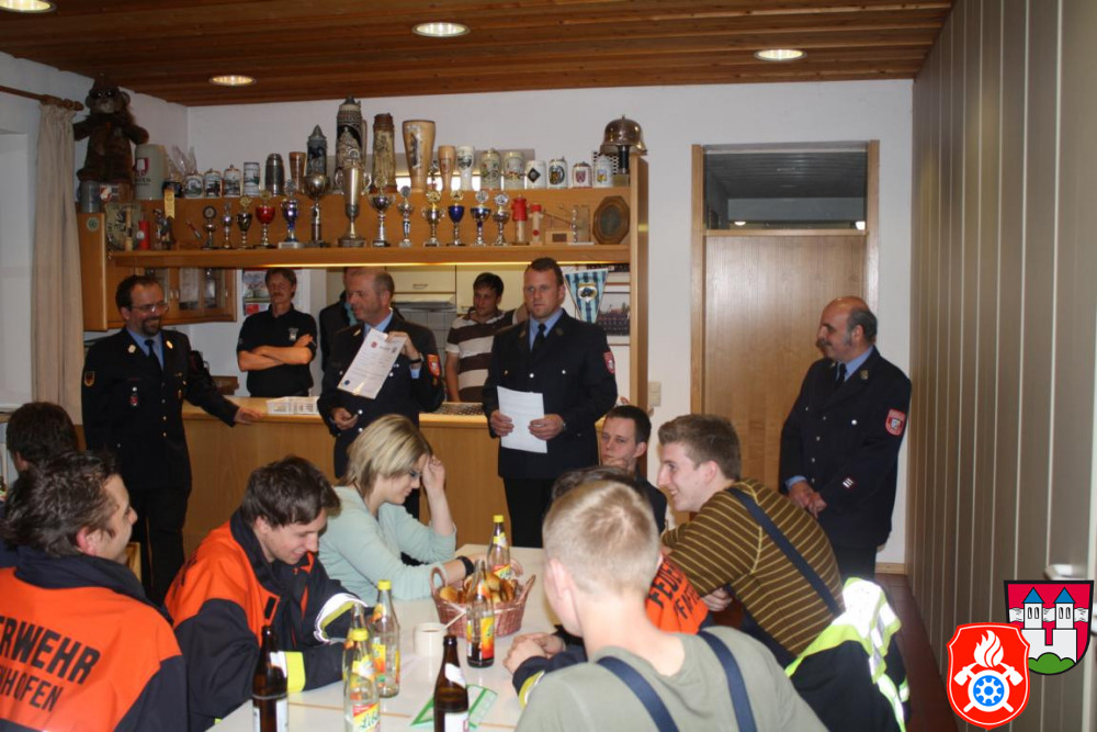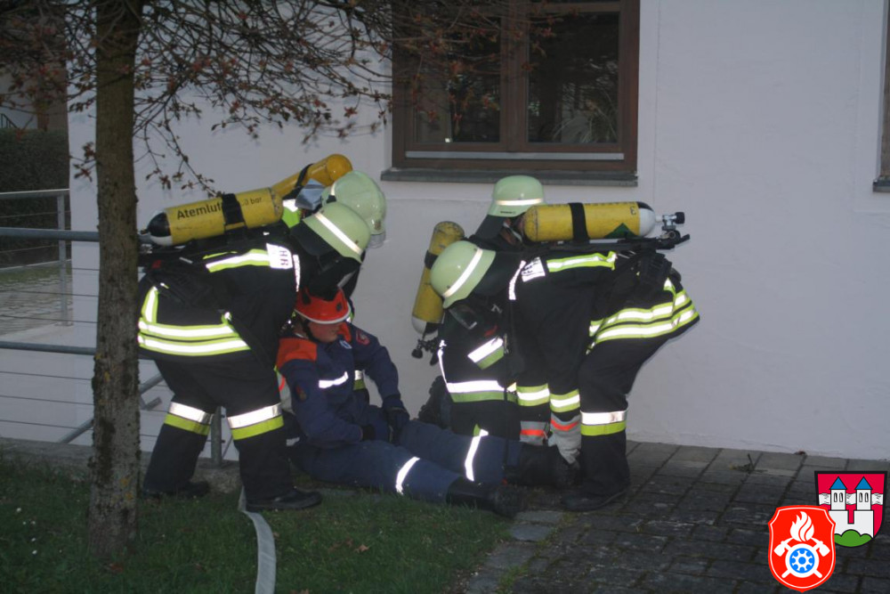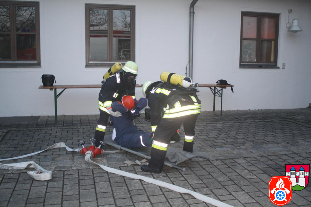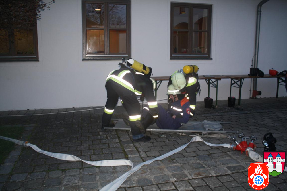 Am Abschlussabend wurde die Prüfung von den Ausbildern KBM Herrmann Kratz (FF Amerang), Max Brand (FF Edling) und Alex Meier (FF Wasserburg a. Inn) abgenommen. Anschließend bekamen die Lehrgangsteilnehmer ihr Zeugnis überreicht und der Abend endete mit einer kleinen Brotzeit. Für die Feuerwehr Rott haben Lunghammer Robert und Schaber Martin den Lehrgang mit Erfolg bestanden und stehen so zum Übungs. - und Einsatzdienst für Atemschutz zu Verfügung.