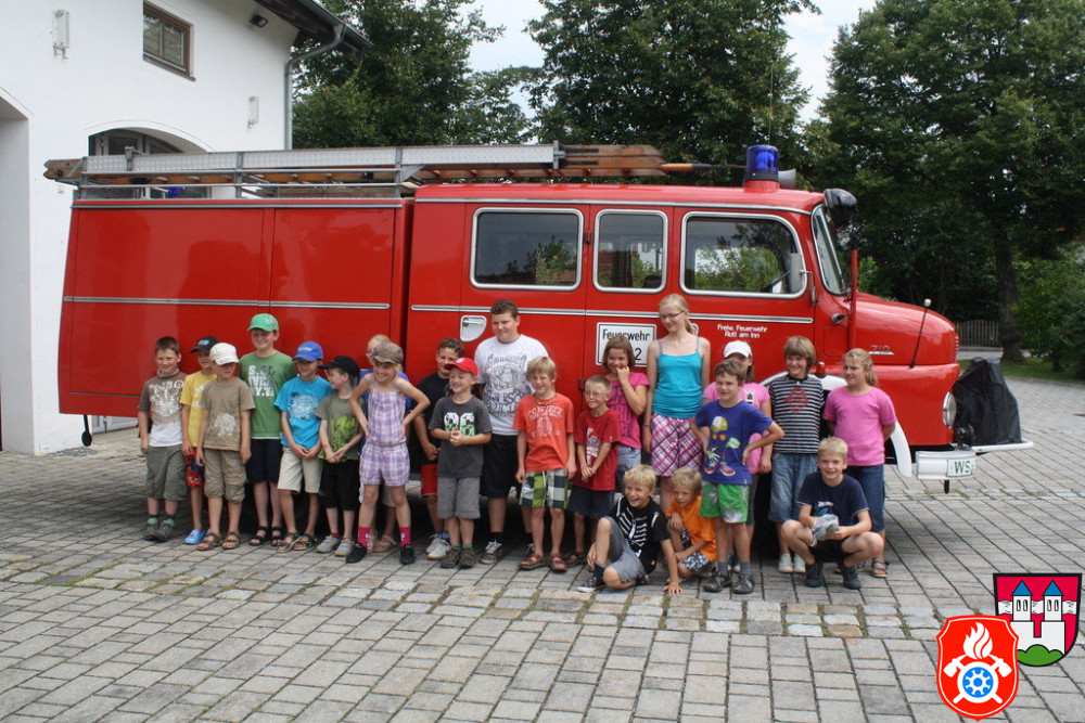 Am Mittwoch den 3. August fand von 14.00 – 17.00 Uhr wieder das alljährliche Ferienprogramm bei der Freiwilligen Feuerwehr Rott a. Inn statt. Bei schönem Wetter wollten 22 Kinder einen Nachmittag lag Feuerwehrmann/-frau sein. Der Nachmittag begann mit einer Führung durchs Feuerwehrhaus und Besichtigung der Einsatzfahrzeuge. Anschließend wurden die Aufgaben der Feuerwehr vorgestellt und erklärt wie man einen Notruf richtig macht.
