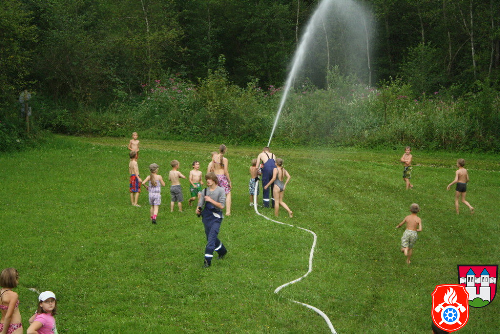 Danach fuhren wir zum Rotter Ausee und machten einen Löschaufbau, wo natürlich alle Kinder selbst spritzen durften und die traditionelle dusche genossen. Zum Abschluss des Tages gab es im Feuerwehrhaus noch eine kleine Brotzeit für jedes Kind.