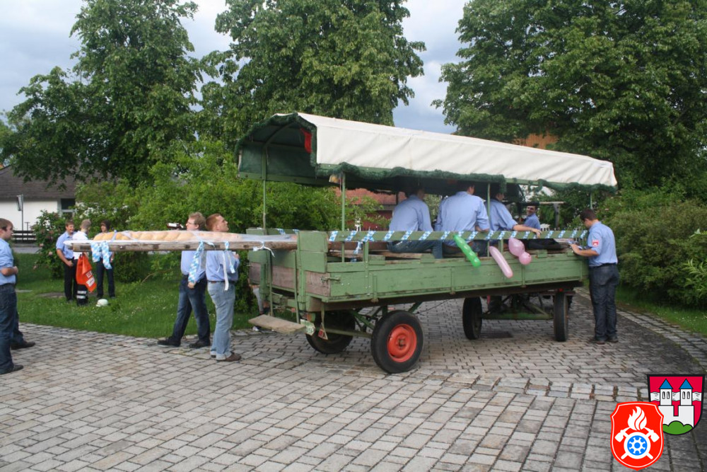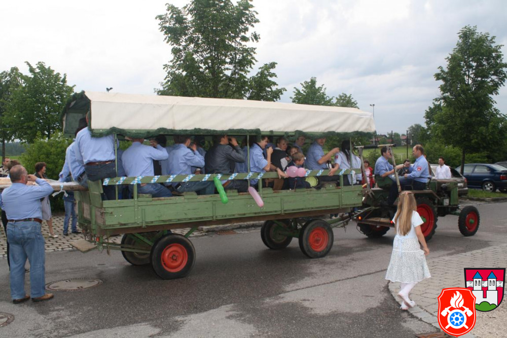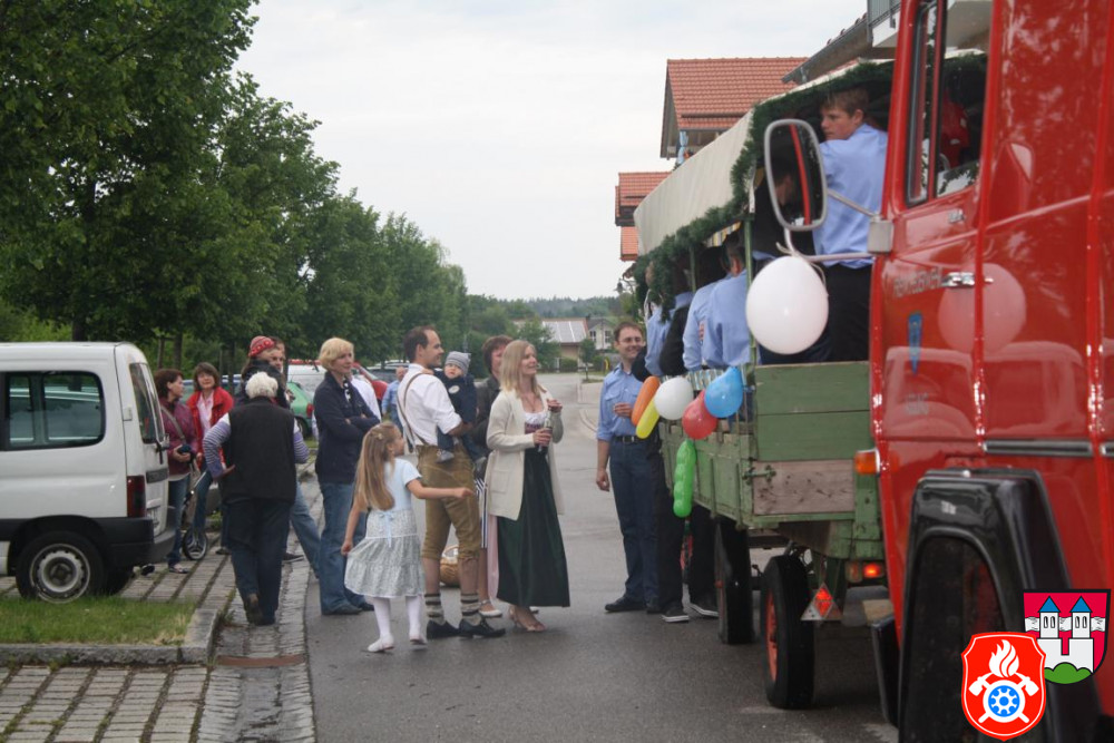 Gemeinsam machte sich die Feuerwehr Rott und Aßling mit den geschmückten Weisertwecken und Fahrzeugen auf den Weg durch Rott zur Heinrich-Vacher-Straße.