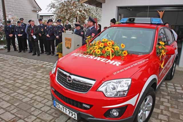 Bereits Anfang Januar begann die Suche nach dem passenden Fahrzeugtyp. Durch das Abwägen von Vor- und Nachteilen einigte man sich auf einen Opel Antara, wo Ende April auch der Gemeinderat zustimmte. Sofort ging die Bestellung an die Firma Dengler/Crüwell in Rott weiter. Nach der Lieferung Mitte September wurde das Fahrzeug dann bei der Firma Geidobler und Car Artists fertiggestellt.