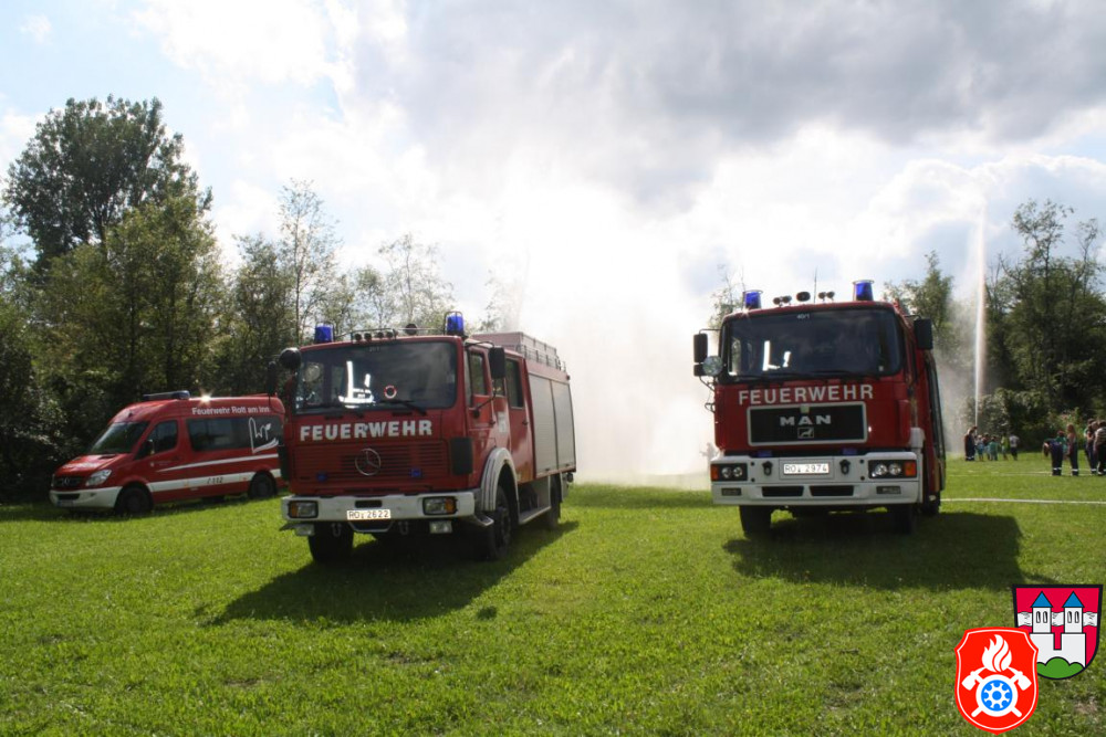 Am Mittwoch den 8. August fand von 14.00 – 17.00 Uhr das alljährliche Ferienprogramm bei der Freiwilligen Feuerwehr Rott a. Inn statt. Bei schönem, sommerlichem Wetter wollten 24 Kinder einen Nachmittag lag Feuerwehrmann/-frau sein. Der Nachmittag begann mit einer ausgiebigen Führung durchs Feuerwehrhaus und Besichtigung der Einsatzfahrzeuge. Danach fuhren wir zum Rotter Ausee und machten einen Löschaufbau, wo natürlich alle Kinder selbst spritzen durften und die traditionelle Dusche nicht fehlte. Zum Abschluss des Tages gab es im Feuerwehrhaus noch eine kleine Brotzeit und eine Urkunde für jedes Kind.