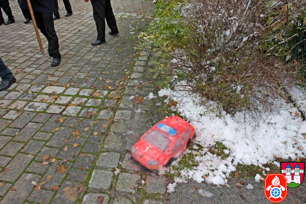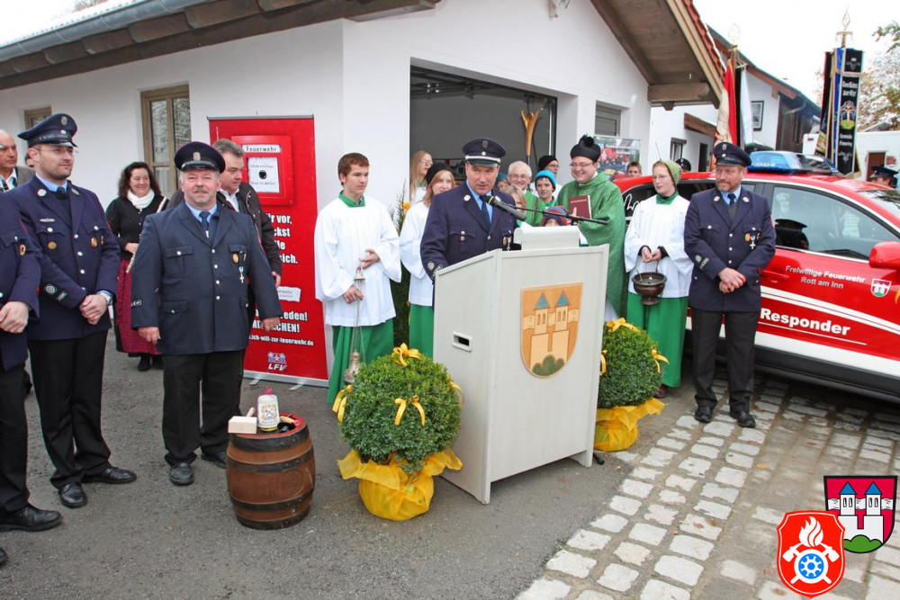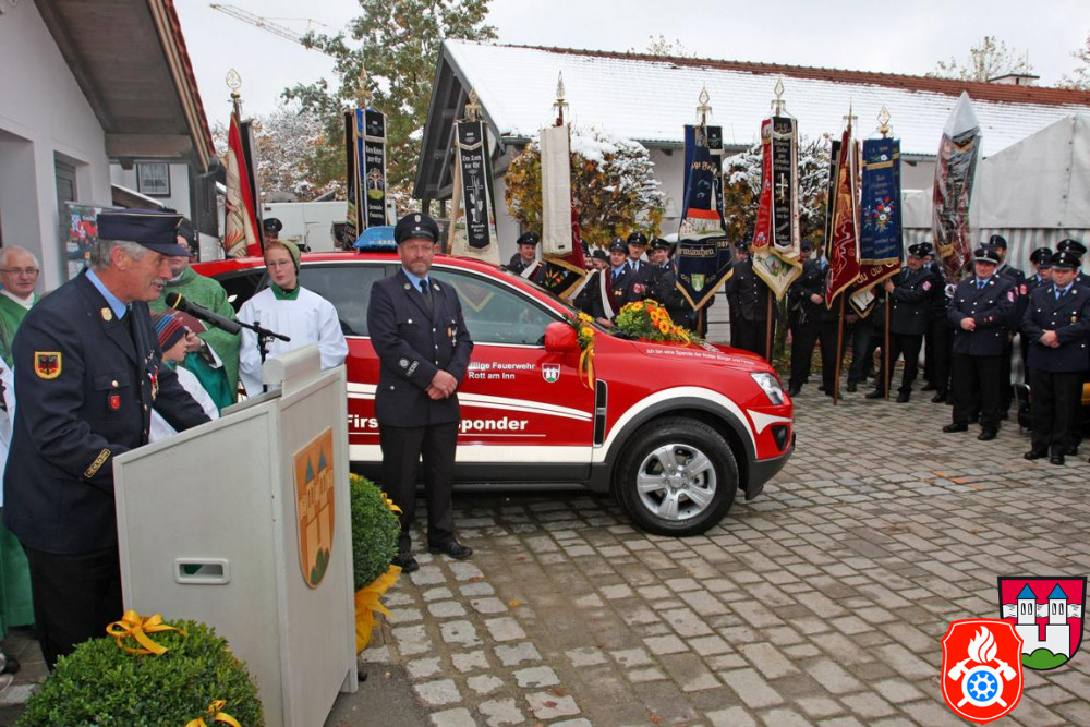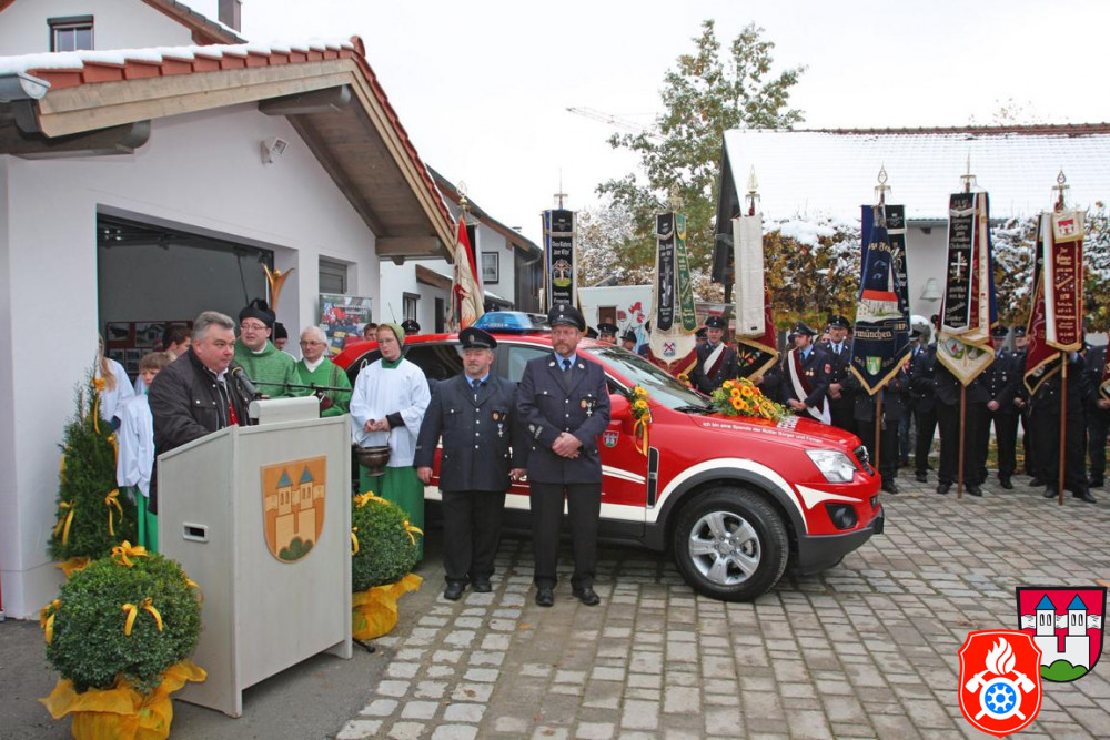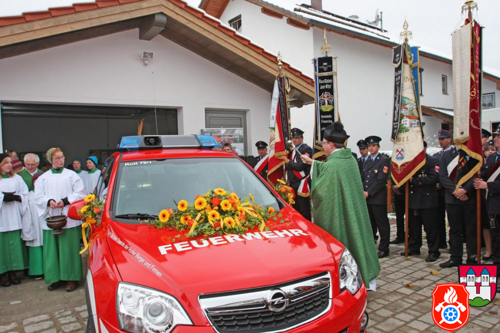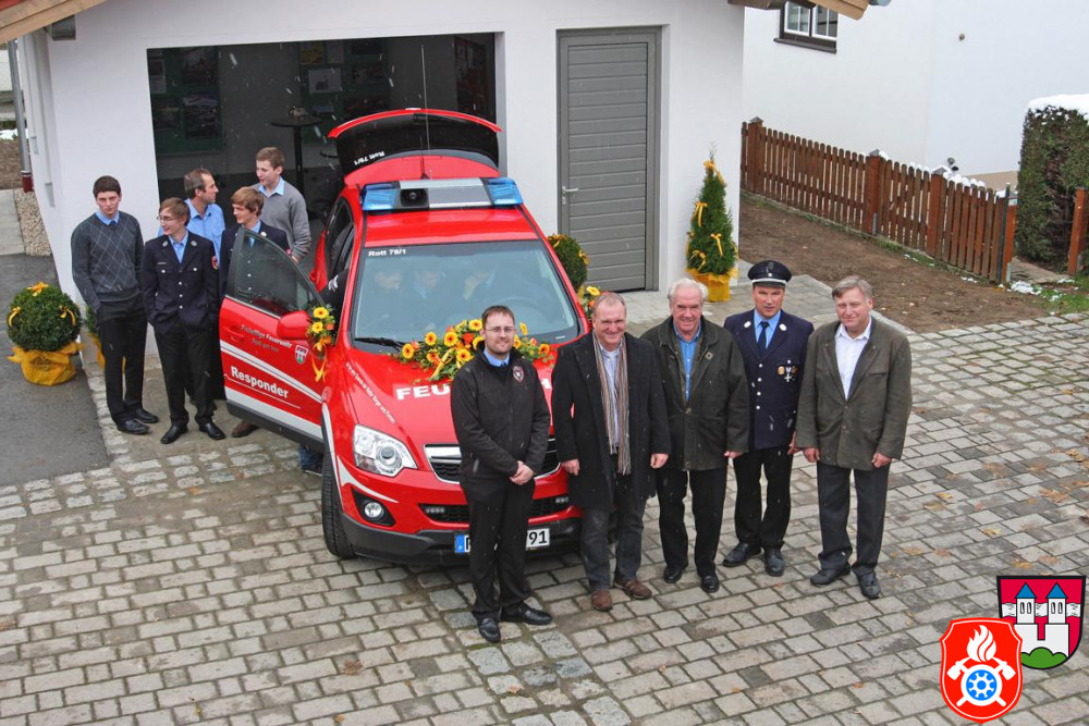 Am 28. Oktober wurde das Fahrzeug und die Garage mit einem Gottesdienst, Festumzug und anschließender Feierlichkeit im Feuerwehrhaus eingeweiht. Zahlreiche Bürger und befreundete Nachbarfeuerwehren kamen und feierten das Ereignis nach dem Motto "Helfen in der Not, ist unser Gebot". Herr Pfarrer Klaus Vogl schenkte dem neuen Fahrzeug Gottes Segen und der Herrgott selbst schickte gefrorenes Weihwasser in Form von Schnee für sichere und unfallfreie Einsätze des First Responder Autos.