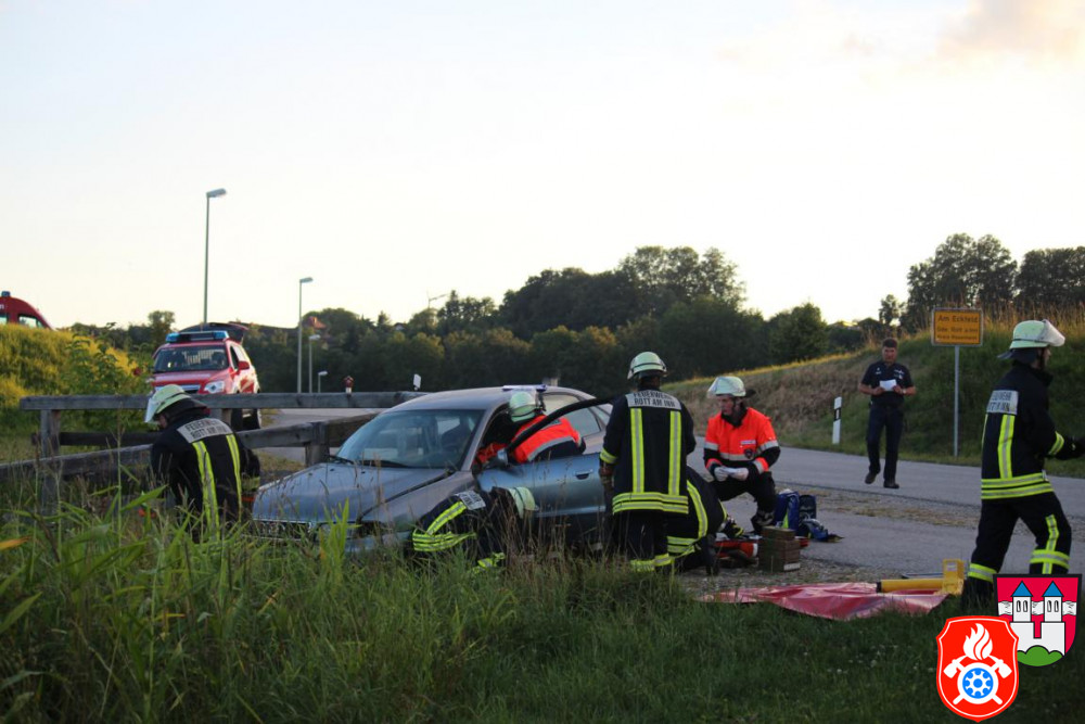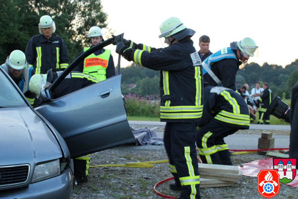 Einsatzmeldung zu einer Alarmübung der Feuerwehr und First Responder Rott a. Inn am Dienstag, den 30.07.2013. Pünktlich um 20.00 Uhr wurde zur Übung alarmiert. Insgesamt 4 Fahrzeuge rückten zur Unglücksstelle auf der Verbindungsstraße der Staatsstraße 2079 zum Gewerbegebiet „Am Eckfeld“ aus.