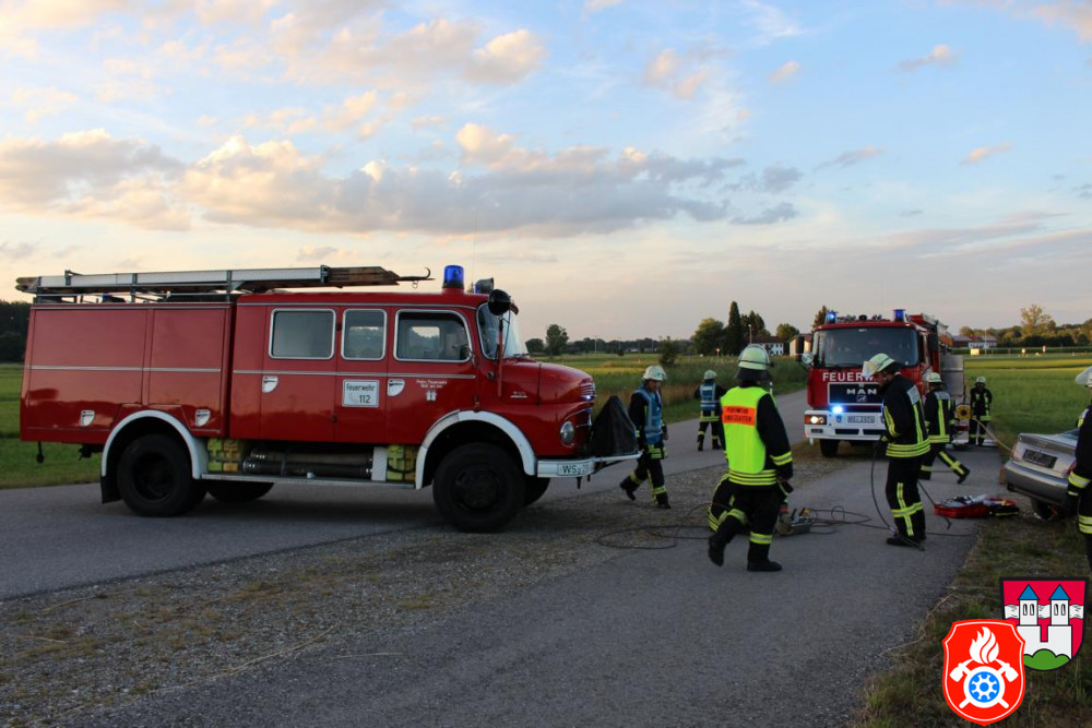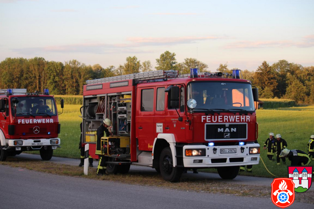 Die Feuerwehr Rott a. Inn bedankt sich bei allen beteiligten mückengeplagten Kameraden und Helfern, sowie der Firma Dengler-Crüwell, die das Wrack abgeschleppt hat.