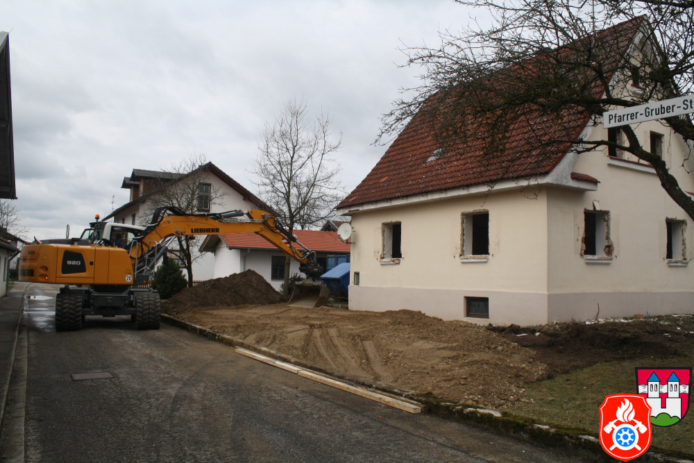 Die Gemeinde hatte das Anwesen vor Jahren von der Erbengemeinschaft des Ehepaars Kaindl erworben – durchaus mit der Absicht, es irgendwann abzubrechen. Dem Haus stand Bürgermeister Schaber zwar durchaus „Atmosphäre“ zu, gestand aber auch, dass die Bausubstanz marode und eine zeitgemäße Instandsetzung nicht darstellbar gewesen sei. Der Abriss ist erfolgt, jetzt werden Parkplätze für das Feuerwehrhaus und den Pfarrkindergarten angelegt. Klemmer