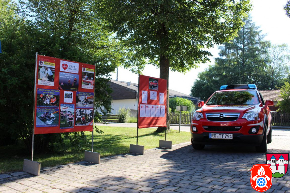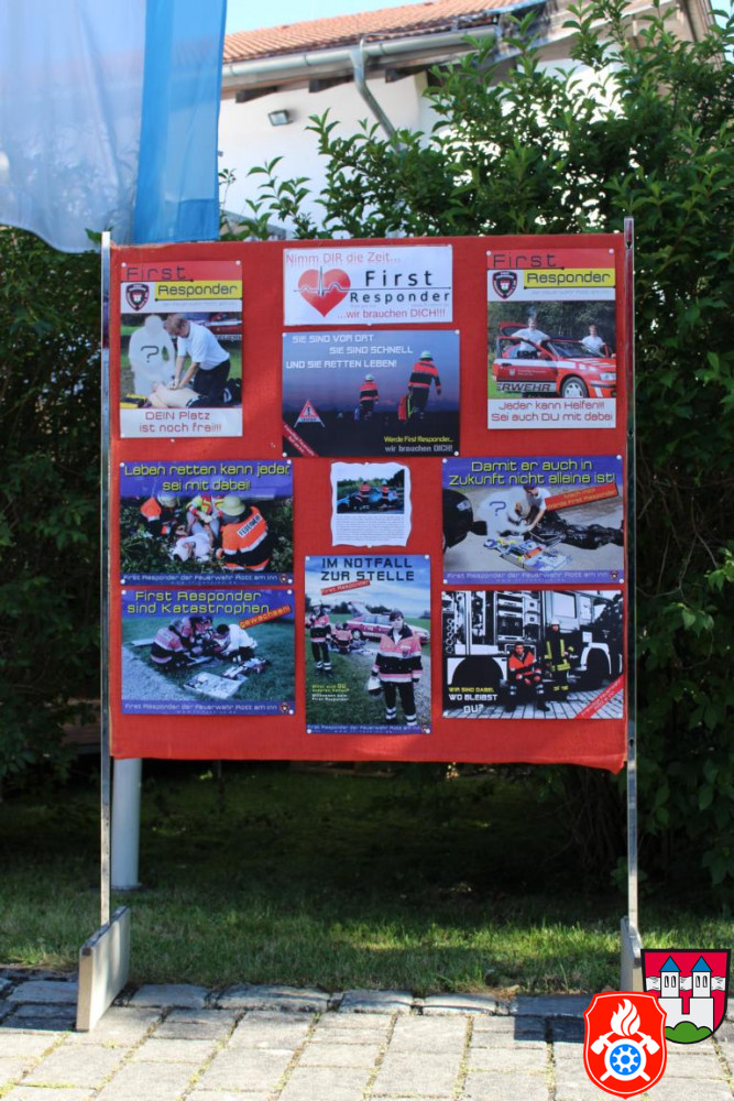 Die First Responder organisierten beim Eingang zum Sommerfest einen Infostand und informierten alle Interessierten über die Aufgaben und Verpflichtungen eines First Responders. Zudem hat die Gruppe ein kurzes Video mit Bildern der letzten 10 Jahre vorbereitet und abgespielt.