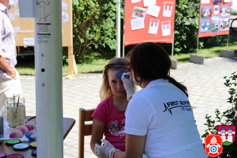 Auch unsere kleinen Besucher kamen nicht zu kurz und konnten sich austoben in der Feuerwehrhüpfburg, Fahrten im Feuerwehrauto und dem beliebten Kinderschminken.