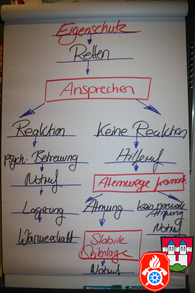 Neben den regulären Kursthemen von einem Erste Hilfe Kus, wurden auch aktuelle Ereignisse aus Einsätzen angesprochen und verschiedenste Fallbeispiele durchgeführt. Es durften auch Wunschthemen genannt werden, welche dann erklärt worden sind.